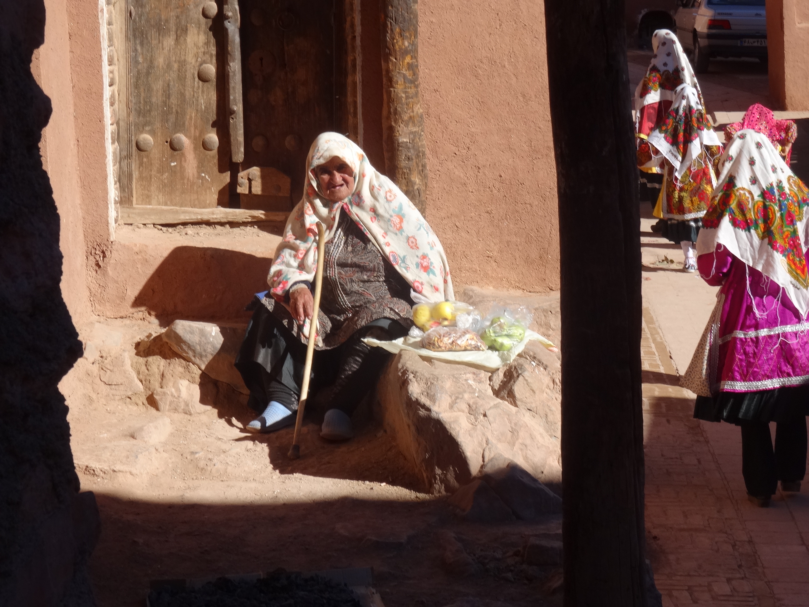 Din Kashan am plecat mai departe către munți părăsind autostrada după câteva zeci de kilometri pentru a ajunge la satul Abyaneh. Acesta este un sat cu 300 de locuitori aflat la peste 2500 de metri înălțime. A devenit o importanta destinație turistică pe drumul dintre Kashan și Isfahan ca și sat istoric care a reușit să-și păstreze tradițiile de sute de ani, de la meșteșuguri la portul popular. Nu exista prea multe locuri de văzut, poate doar mica moschee și vechiul templu zoroastrian al focului dar nu pentru asta vin turiștii la Abyaneh. Străduțele înguste bine îngrijite, aerul curat, vârfurile abrupte ale munților acoperiți de zăpadă și mai ales locuitorii satului fac din Abyaneh un loc de vis. Portul femeilor este renumit, fiind vorba de un batic mare alb pictat cu flori purtat de toate localnicele. Am cumpărat câteva suveniruri de la doamnele prietenoase, nu înainte să le fac câteva poze pentru ca apoi să asistăm la o nuntă în sat. Toate bune și frumoase numai că mireasa avea vreo zece ani. Se pare că frumusețea fetelor din sat este renumită și marea majoritate se căsătoresc la o vârstă fragedă cu soți mai în vârstă înstăriți. Din ce am înțeles este mai mult o promisiune pentru că fetele rămân acasă cu părintii până cresc mai mari când pleacă la soț. Exceptând ciudățenia diferenței de vârstă între cei doi miri, ceremonia în rest a fost foarte frumoasă cu muzica tradițională și mulți săteni invitați. Nu puteam pleca din Abyaneh fără a gusta din mâncarea locală. Am ales de siguranță singurul fel de mâncare care știam ce presupune, kebabul iranian – mai exact carne făcute la grătar pe frigăruie servită cu orez basmati și legume. Chiar dacă n-am încercat ceva tocmai ciudat, mâncarea a fost delicioasa.