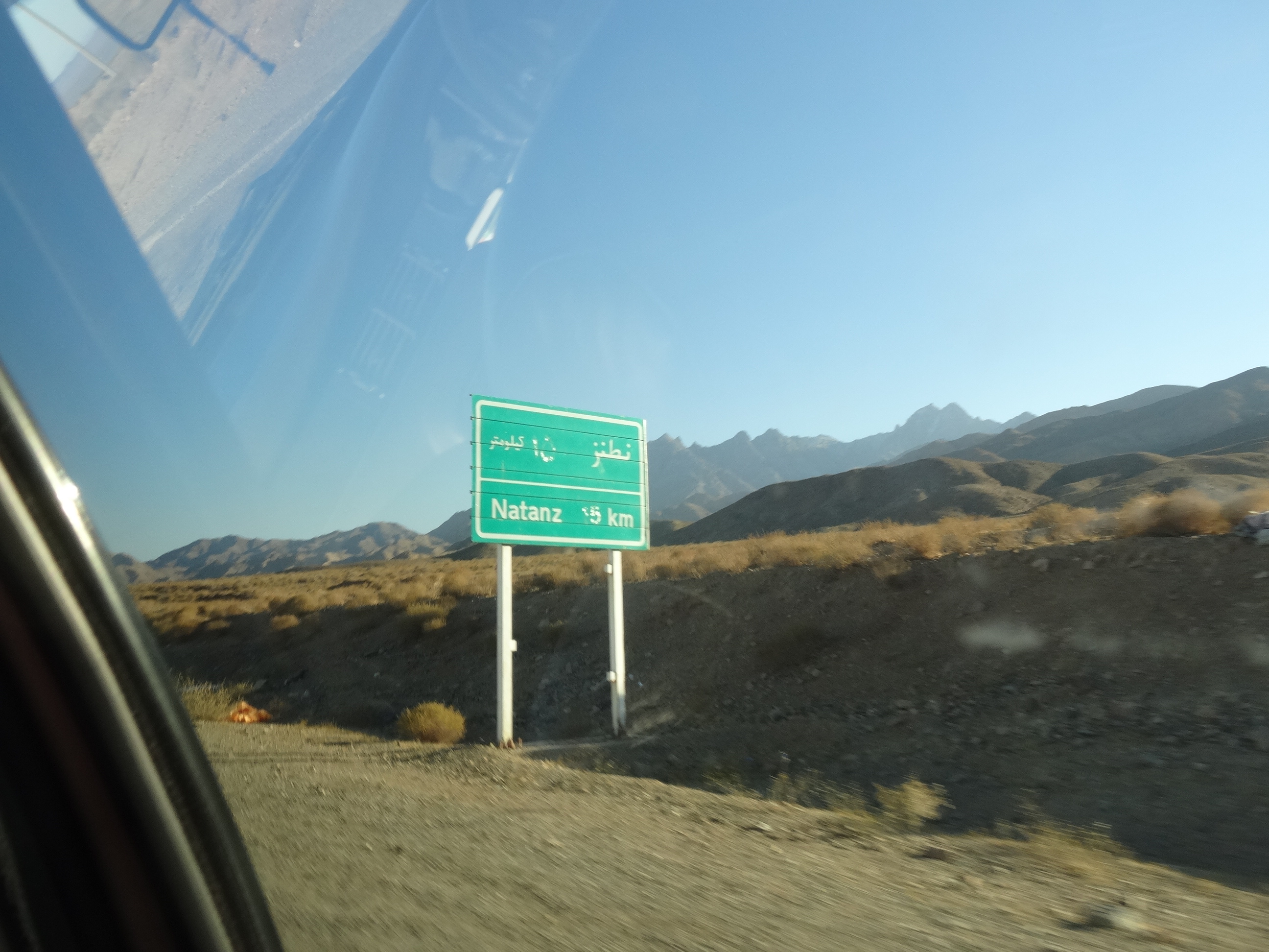 După Abyaneh am trecut cu mașina printr-o zona foarte militarizata în apropiere de orașul Natanz. Motivul este că aici se afla cel mai important centru de îmbogățire a uraniului din Iran și motivul principal pentru sancțiunile externe care au fost impuse tarii. În zonă se găsesc o mulțime de anti-aeriene așezate aici pentru a dobori dronele israeliene sau alte eventuale atacuri.