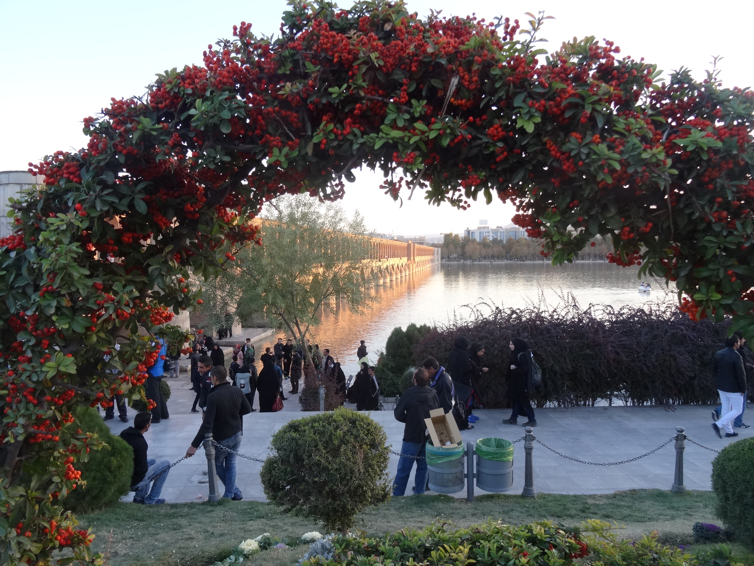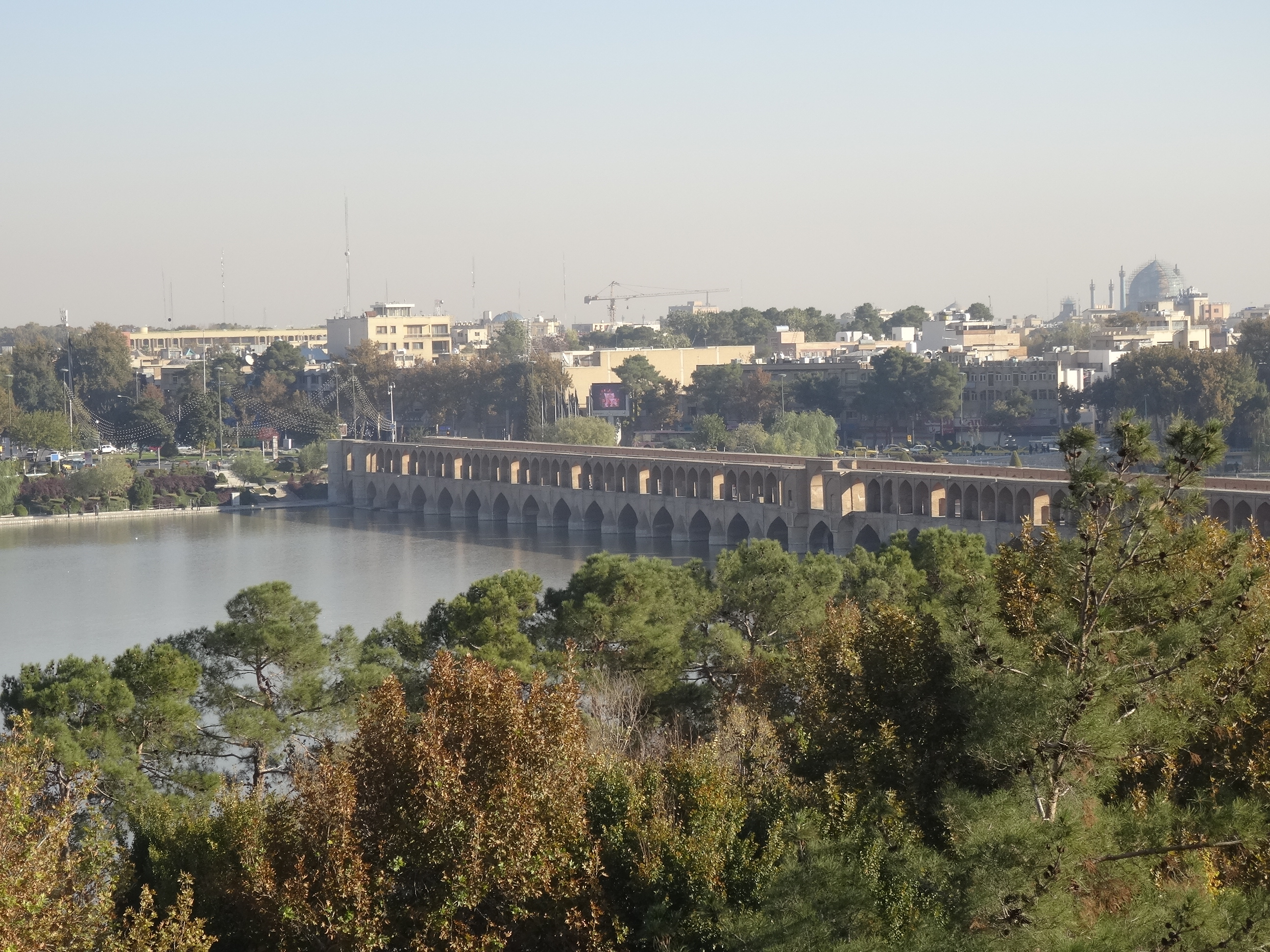 Spre sfârșitul zilei am mers pe strada principală a orașului, Chahar Bagh un bulevard cu multă verdeață dar și mult trafic cu magazine și restaurante. Am luat cina la un restaurant renumit, restaurantul Seherezada unde am servit același kebab traditional și am încheiat seara pe podul Si-O-Seh, un alt simbol al orașului. Podul cu 33 de arce peste râul Zayandeh este cel mai spectaculos dintre podurile din Isfahan. Am aflat și că am avut noroc pentru că doar cu o zi înaintea sosirii mele s-a dat drumul râului de la barajul aflat în amonte de oraș pentru prima dată după doi ani. Iranul duce lipsa de apa de care are nevoie atât pentru consum cât și pentru a păstra funcționale numeroasele hidrocentrale.