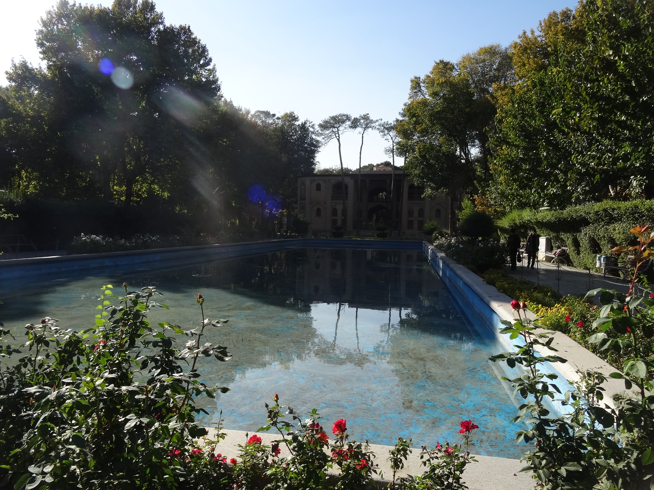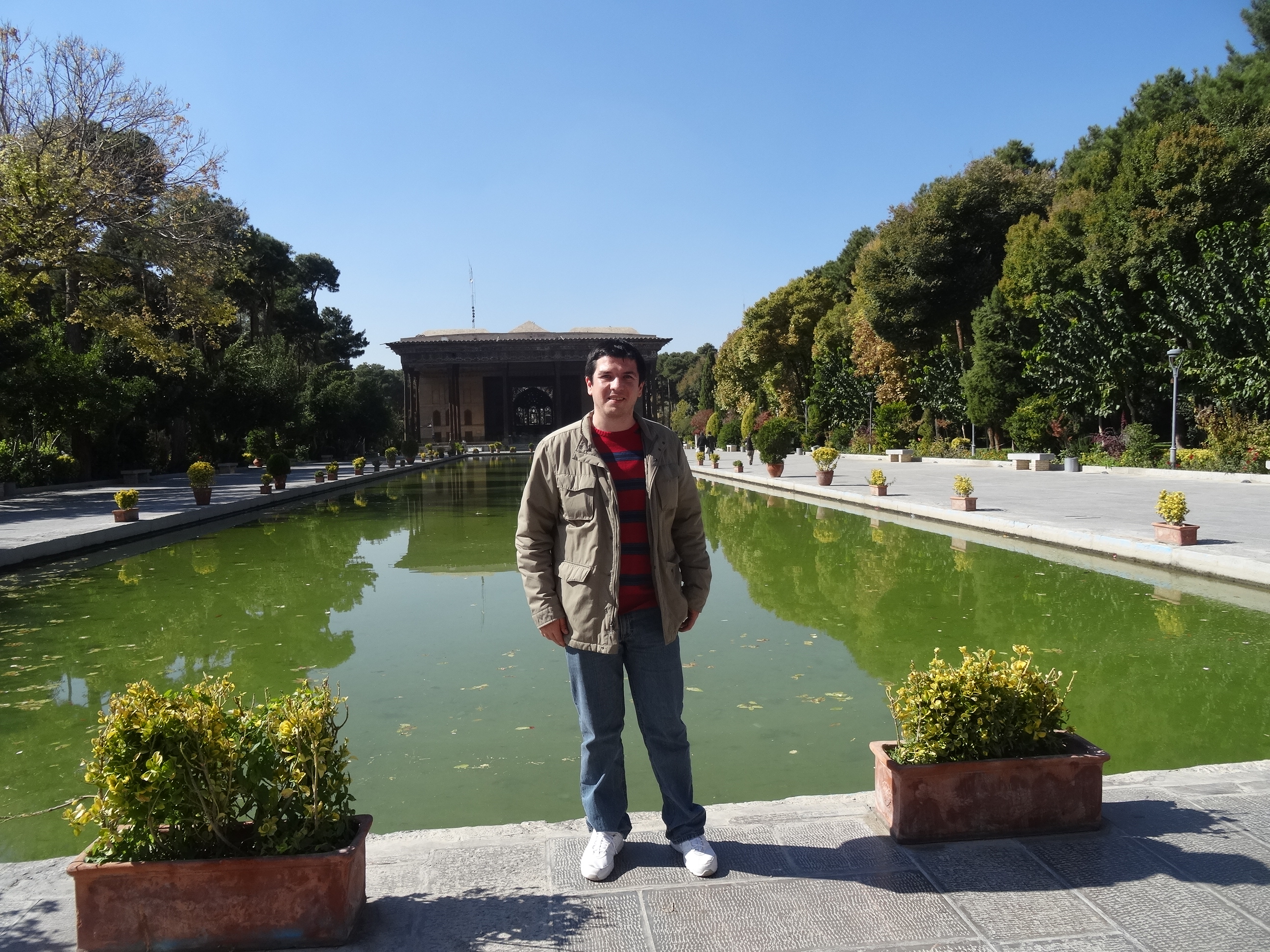 Să nu credeți că piața cea mare e tot ce e de văzut prin Isfahan. Nici pe departe. După piață am mai vizitat două palate aflate în mijlocul unor grădini pline de verdeață. Mai întâi Chehel Sootoon – un palat care era folosit pentru audientele regale, având un mare pavilion pictat cu tablouri ale victoriilor în bătălii ale imperiului. La intrare, pe tavanul înalt se află oglinzi uriașe în care fiecare vizitator poate să se vadă. Celalalt palat, Hasht Besht ornat cu aceleași decorații tipic persane se află în centrul unei mari grădini care a fost transformată în parcul central al orașului.