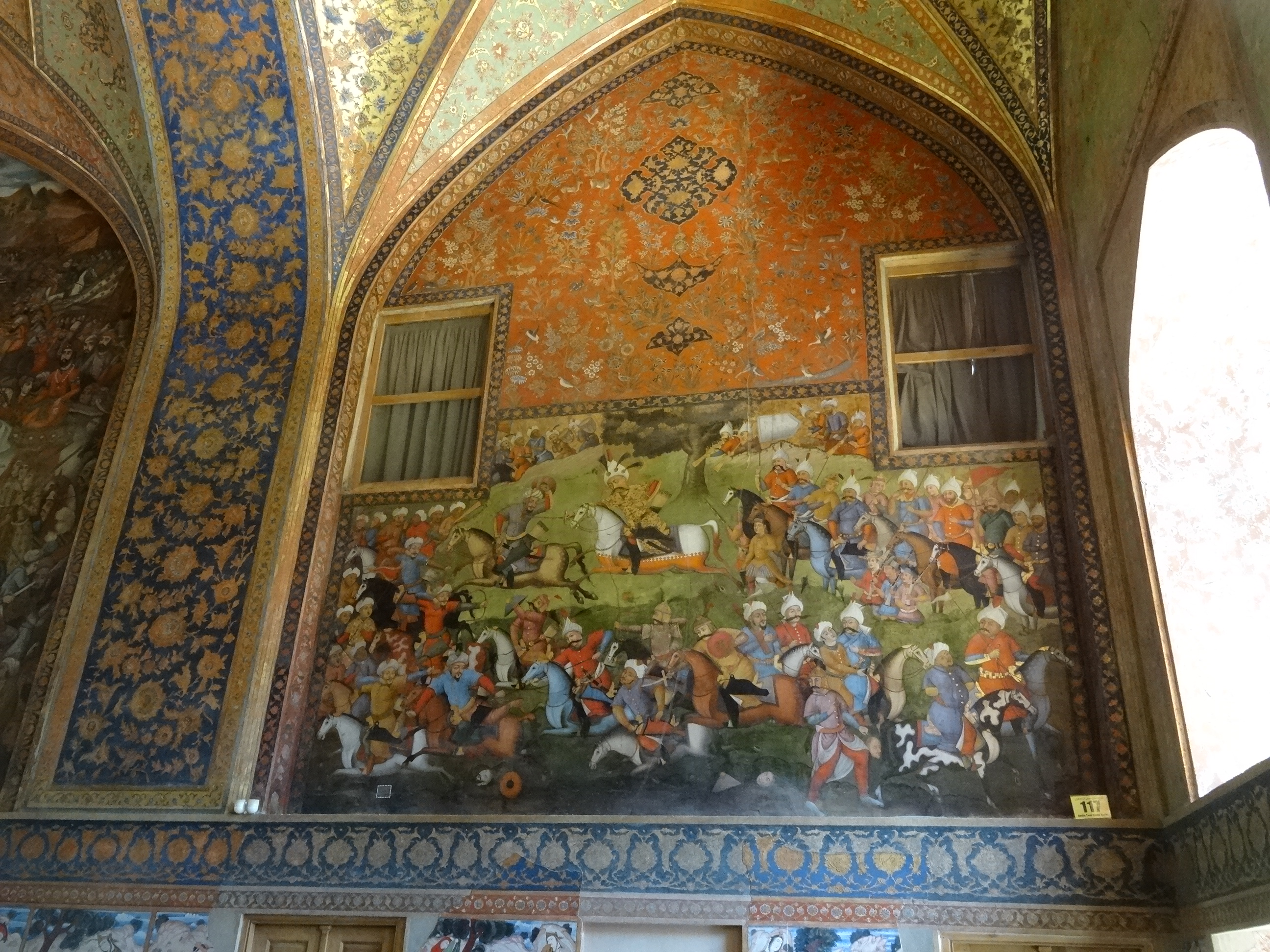 Punctul vestic al pieței este palatul Ali Qapu, palatul regal. Acesta nu impresionează prin dimensiuni dar are ornamente și picturi absolut superbe dar și o acustică unică. Mai întâi am primit de la intrare un audio-ghid în engleză (improvizat dintr-un telefon mobil) și am continuat turul pe scările palatului. La etajul trei se află terasa de unde se poate vedea cea mai frumoasă priveliște a pieței și a clădirilor din jur. La etajul superior am vizitat salonul muzical cu un acoperiș din lemn decorat cu forme de sticle și recipiente care craza o rezonanță deosebită.