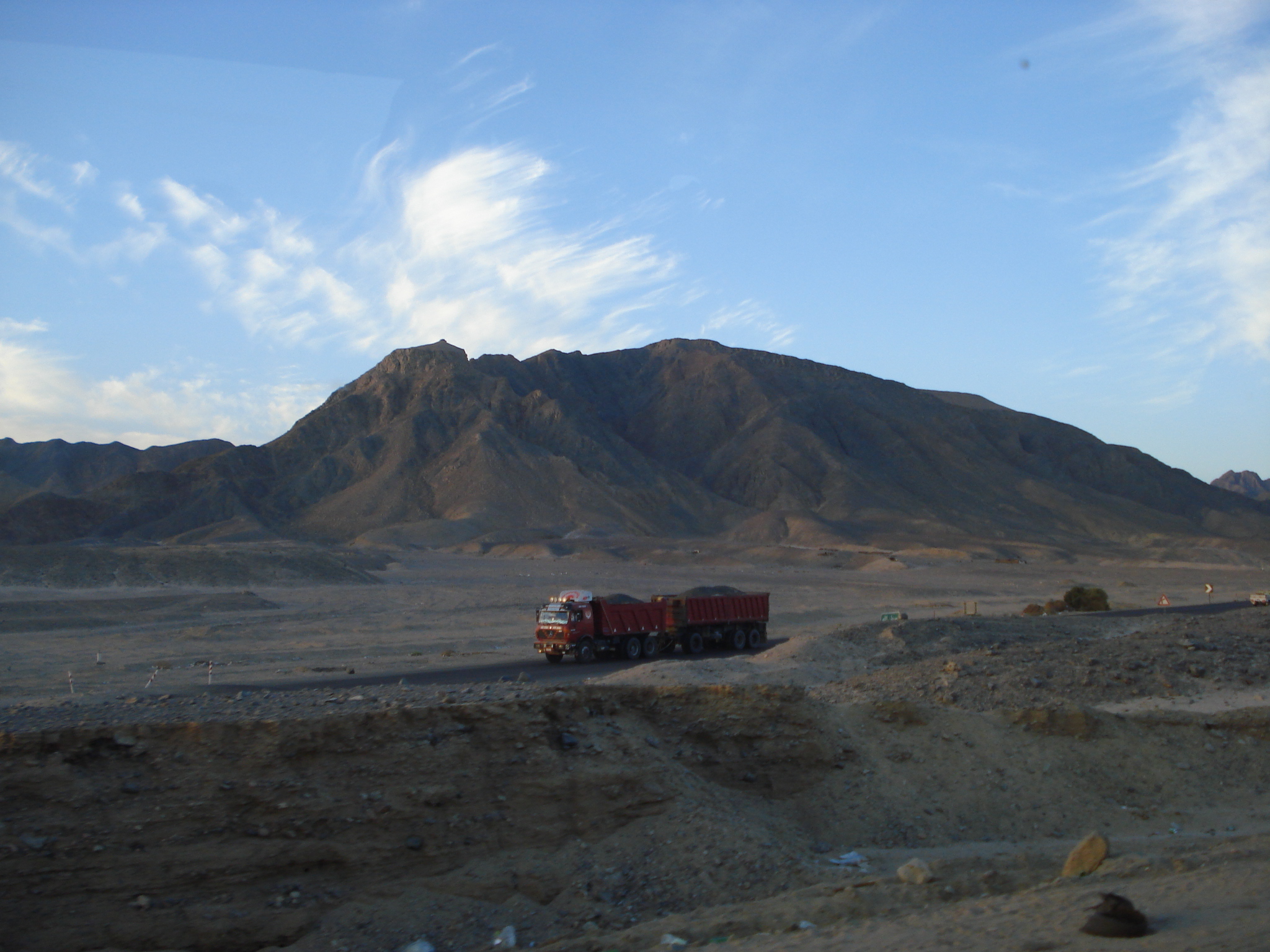 Din Hurghada până la Luxor se merge cam 4 ore. Am plecat de la hotel pe la 5 dimineața iar după vreo 50 de kilometri ne-am oprit la un popas unde era și un checkpoint militar. Motivul era că autoritățile cereau ca toate autocarele să meargă în coloană pentru a străbate munții populați cu beduini considerați periculoși, însemnând segmentul de drum dintre Safaga și Qena. Am așteptat până la ora 6 când se strânseseră deja vreo 20 de autocare până când armata a dat unda verde să plecam la drum. Munții i-am parcurs în coloană trecând destul de repede prin peisajul arid parcă de pe altă planetă. Autocarele mergeau cu viteza mare chiar dacă drumul nu era cine știe ce, pe alocuri fiind chiar neasfaltat.