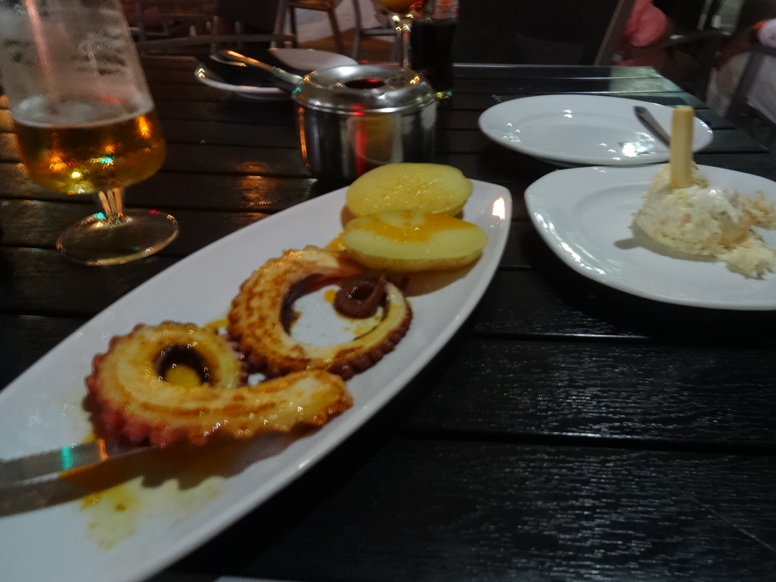 Dimineața am ieșit la plimbare pentru a cauta un loc pentru micul dejun și întâmplator am ajuns la Mercado Central, piața principală a orașului unde am dat peste niște arome îmbietoare astfel încât am zis că mai bine ne luam de mâncare de aici. Am cumpărat pâine proaspătă de la cuptor, jamon serrano, queso de Manchego (o brânză tradițională din Castilia), suc de portocale proaspăt și normal cafea și am servit o masă excelentă la băncile amenajate în spatele pieței. Sunt orașe în care piața centrală e un loc care merită vizitat, iar Alicante este unul dintre acestea. Localnicii se mândresc cu piața lor și obișnuiesc să își facă cumpărăturile aici chiar dacă prețurile sunt mai mari decât la supermarketuri dar așa încurajează producția locală și pot să beneficieze în continuare de mâncare sănătoasă și proaspătă.