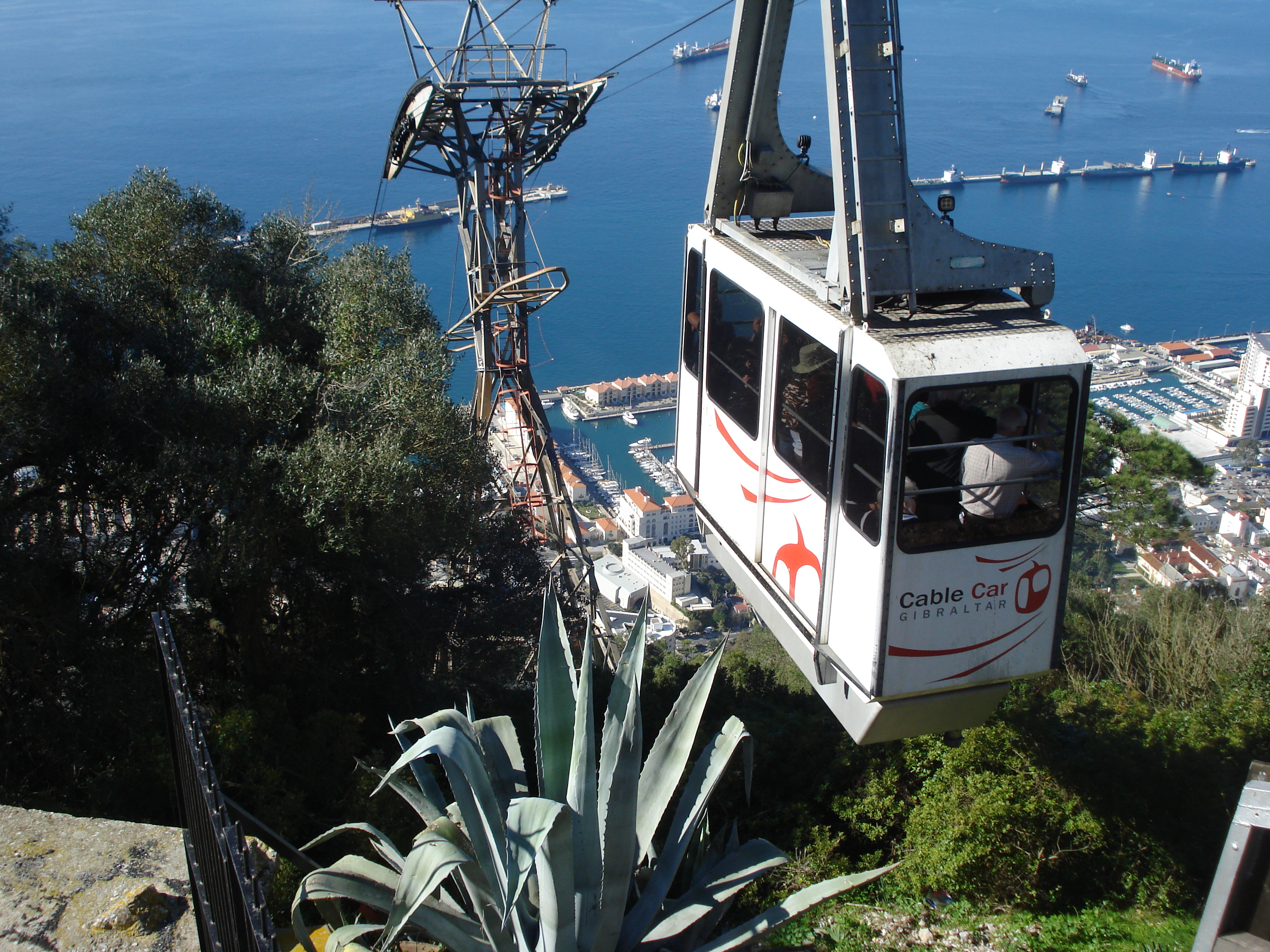 Prima destinație pe care am vizitat-o a fost Gibraltar, unde am ajuns mergând pe autostrada Mediteranei. Gibraltar este faimos pentru stânca cu același nume care demarcă strâmtoarea dintre Europa și Africa și separă Mediterana de Oceanul Atlantic. Este un stat mic ce aparține de Marea Britanie. Prima surpriză am avut-o cu mașina chiar la intrarea în stat. După ce am trecut de un control minim la graniță am stat la semafor minute bune în mașină așteptând să… aterizeze un avion. Aeroportul din Gibraltar este unic în Europa în acest sens. Din cauza lipsei de teren este construit perpendicular pe fâșia de pământ de unde se deschide peninsula și este traversat de singurul drum de acces în țară. După aterizare, barierele s-au ridicat și am putut traversa pista aeroportului. De acolo am mers direct către stația telecabinei, am lăsat mașina și am luat bilete pentru a urca spre vârful stâncii. Era un soare superb și o vreme ideală astfel că din vârf am putut admira întreaga priveliște peste golful Algeciras și deasupra portului Gibraltar în dana căruia se aflau zeci de vapoare mari. În vârf sunt mai multe alei amenajate pe care se pot face drumeții, fiind o zonă verde unde pe lângă peisaj și natură se pot vizita și bunkerele de apărare britanice din vremea războiului.
