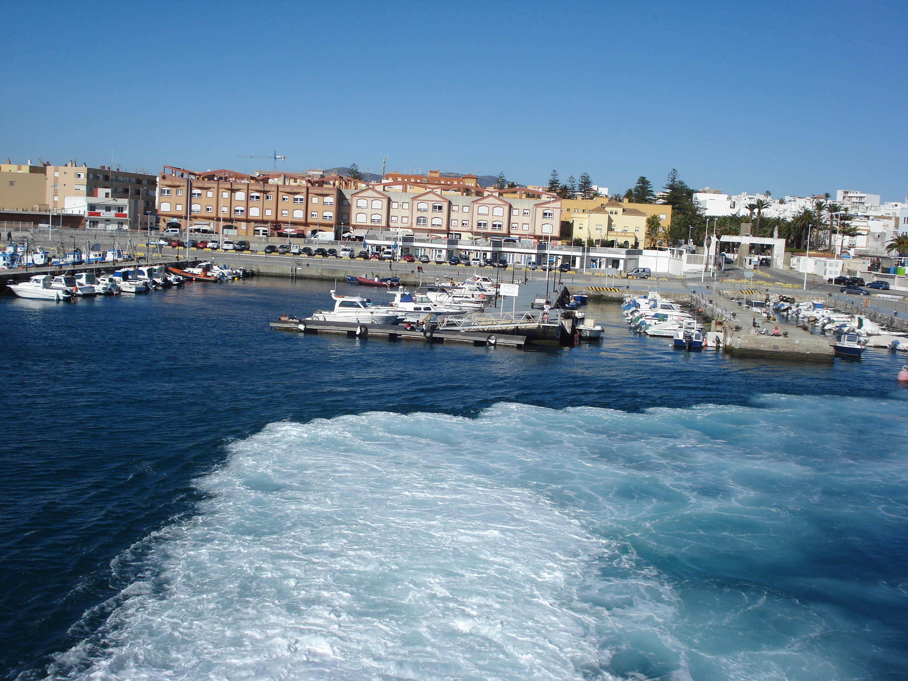 Ziua petrecută la Gibraltar nu a fost totuși singura în afara Spaniei. Ultima zi din concediu am dat o fugă tocmai până în Maroc. Am mers mai întâi la Algeciras de unde pleacă feriboturi atât spre Tanger în Maroc cat și spre Ceuta una din cele două enclave spaniole din Africa. Din Algeciras nu pleca niciun vapor prea curând și am acolo am aflat că există un feribot mai potrivit pentru noi care pleacă din Tarifa la 20 de kilometri distanță. Am condus repede până la Tarifa, cel mai sudic punct al Spaniei și am ajuns la fix pentru a ne îmbarca.