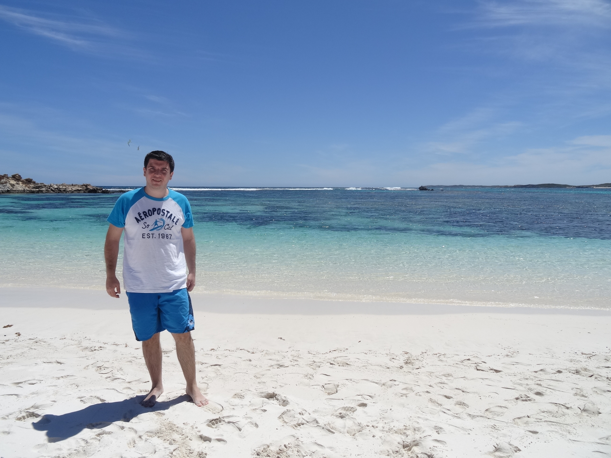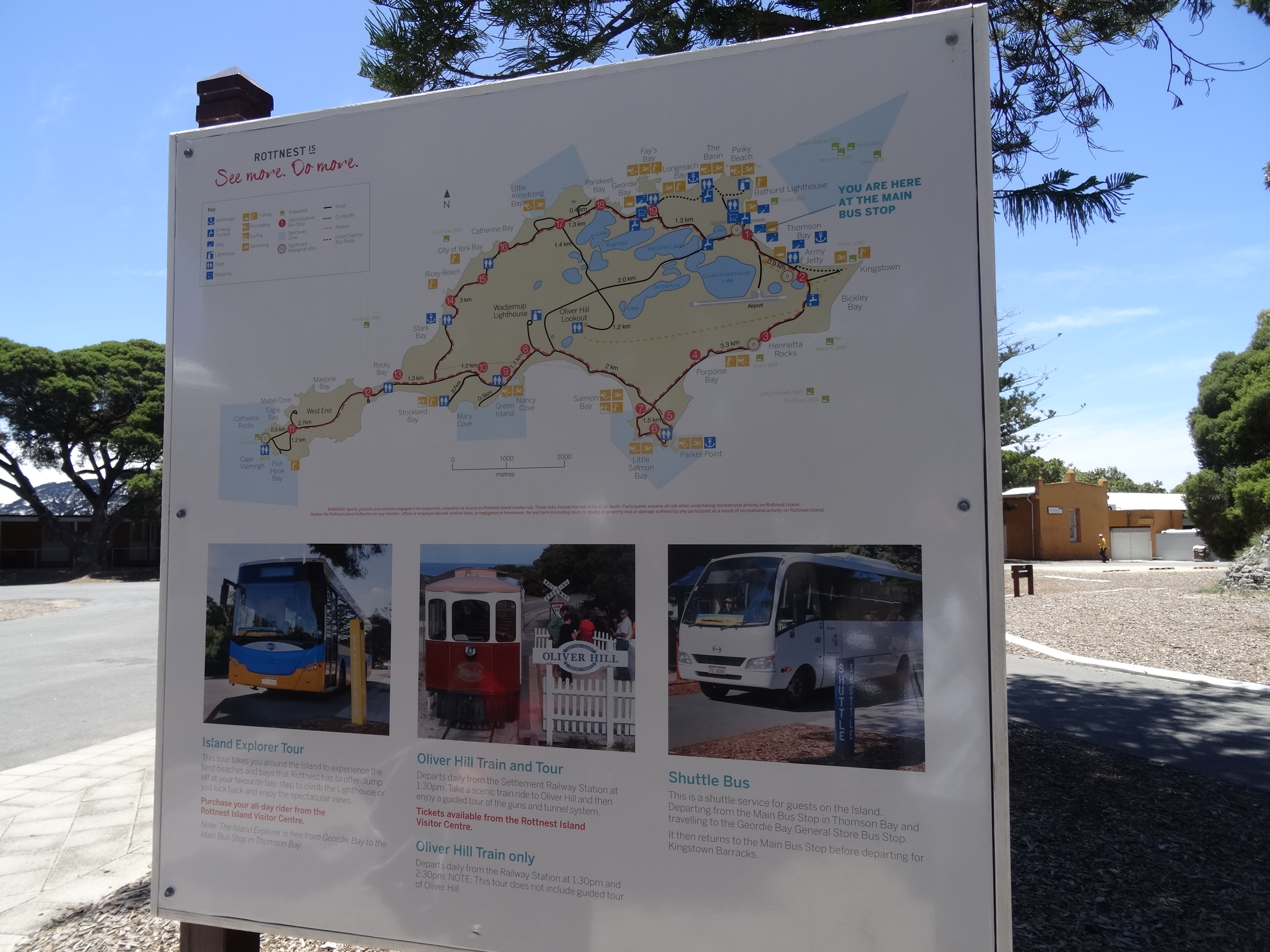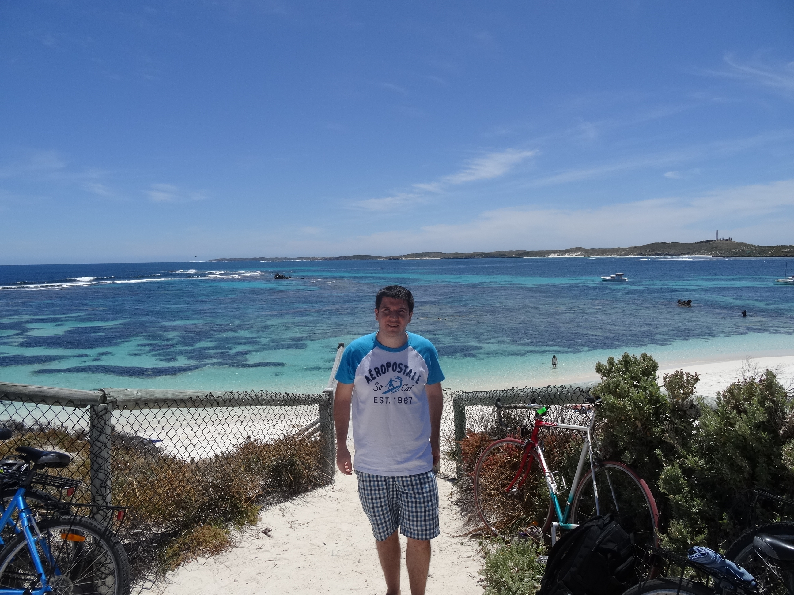 Pe drumul de aproape o oră pe mare am reușit să ma trezesc mai bine iar când am ajuns la insulă am fost pur și simplu fascinat de apa turcoaz și plajele de nisip alb. Insula Rottnest are 7 kilometri lungime și 3 lățime în punctul ei cel mai lat. Este rezervație naturală și nu este locuită. Există doar câteva case folosite mai ales de angajații care lucrează la întreținerea ei. La fel ca mai peste tot în Australia prima construcție de aici a fost o închisoare, folosită pentru deținuții considerați periculoși. Există și un drum asfaltat care înconjoară insula aproape de țărm. Insula este vizitată doar pe timpul zilei, iar turiștii pot face plimbări cu biciclete închiriate sau se pot deplasa cu autobuzul (singurul de pe insulă de altfel) care face ocolul oprind la punctele de atracție principale. Am optat pentru autobuz. Pentru un bilet care includea opriri nelimitate am plătit 20 de dolari.
