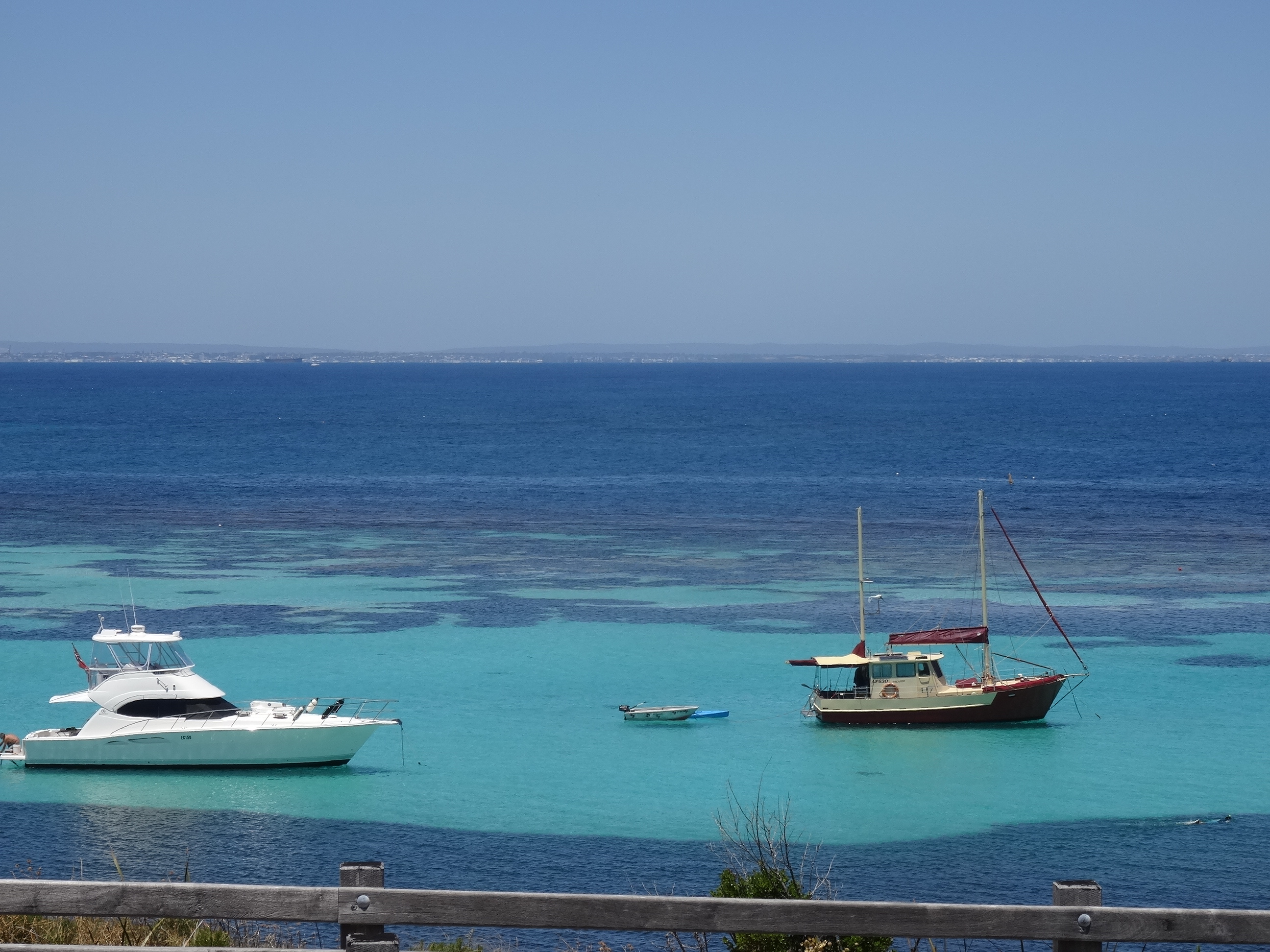 Nu am mai stat să aștept să revină autobuzul și am plecat la pas ultimii doi kilometri până la vapor. Am mai descoperit în centrul insulei câteva lacuri sărate, pe malul cărora sute de specii de păsări, care mai de care mai ciudate, își făceau adăpostul. Am trecut pe lângă mai multe golfuri superbe, unul din ele în care ancoraseră mai multe ambarcațiuni iar mai spre seară am ajuns la micuțul port, la fix pentru vaporul de la ora 6. Am traversat din nou oceanul spre Fremantle unde nu am mai coborât, ci am continuat pe râul Swan printre iahturi luxoase și case de bogătași pe construite malul apei iar două ore mai târziu ajungeam la Perth.