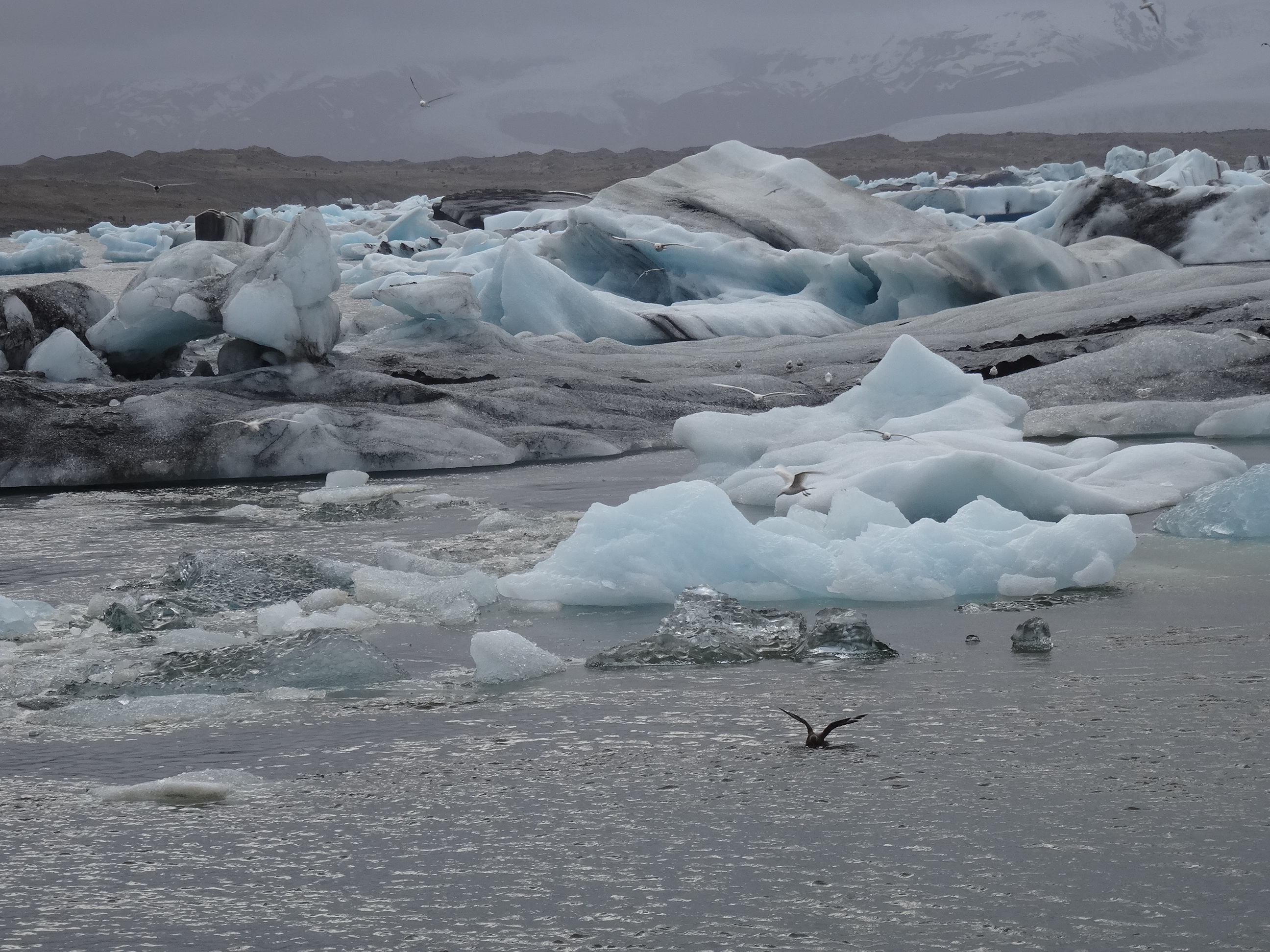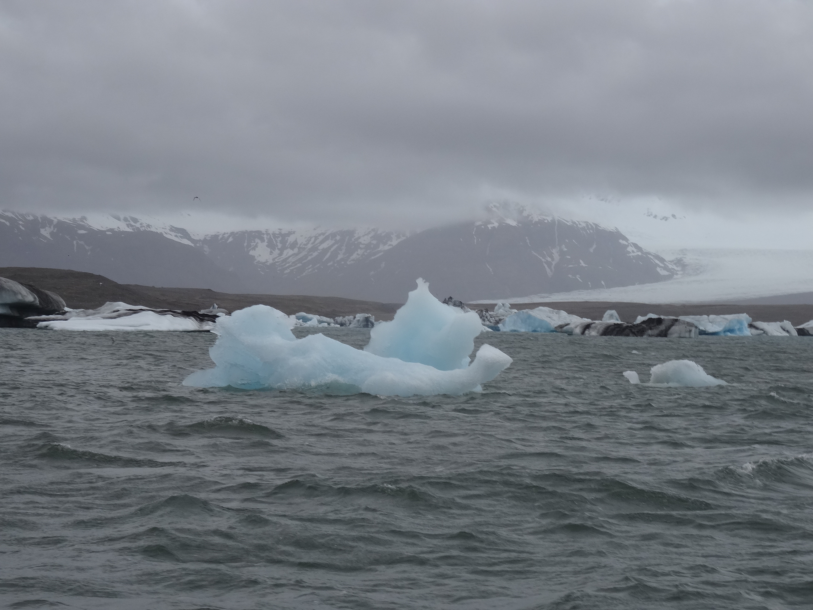 Plimbarea pe apă a fost fantastică, asemenea imagini nu am mai văzut niciodată. Iceberguri albe și albastre ce pluteau printre noi, foci jucându-se în jurul ambarcațiunii noastre iar în depărtare cei mai înalți munți ai Islandei între care se află imensul ghețar Breiðamerkurjökull. Am aflat multe informații utile de la ghid. Datorită căldurii blocurile de gheata se desprind din ghețarul uriaș și plutesc în jurul lagunei sau ajung în ocean și după mai multe zile se topesc. Gheața aflată în apă reflectă culoarea albastru, iar explicația diferenței de culori este puritatea. Blocurile cele mai albastre sunt pure, desprinse de curând din ghețar, cele mai albe având impurități. Ni s-a amintit și că doar 10% din volumul unui iceberg se află deasupra apei, restul fiind scufundat. Uitându-ne la uriașele blocuri plutitoare, am început să vedem altfel locul. Întrebarea imediată a fost care este adâncimea lacului și răspunsul ne-a uimit și el – peste 270 de metri. Ni s-a mai spus și despre viteza cu care avansează laguna și despre riscul ca Breiðamerkurjökull – ghețar lung de peste 20 de kilometri și gros de sute de metri – să dispară complet în mai puțin de 15 ani. Ghidul ne-a cerut să stăm un minut, să ne uităm bine la peisaj, să imprimăm imaginea în minte pentru că data viitoare poate nu va mai fi acolo. Culmea, Islanda una din cele mai ecologice țări ale lumii este poate cel mai grav afectată de poluarea de pe glob și pentru localnici, mari iubitori ai naturii, efectele se văd și dor.