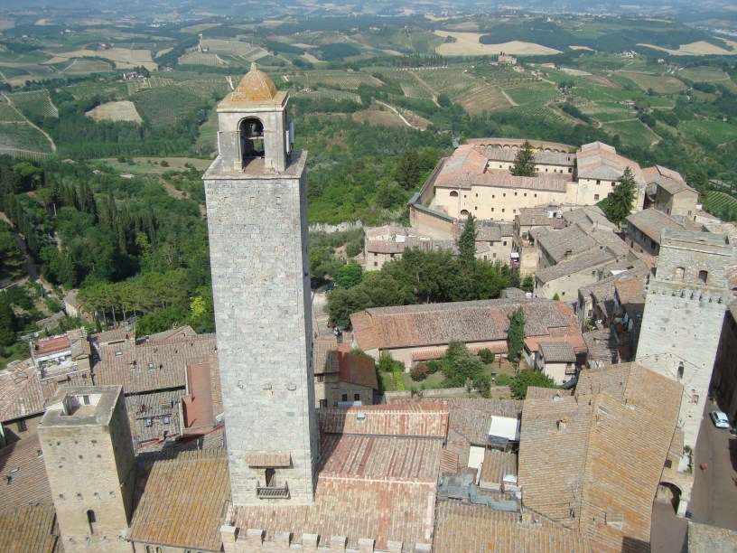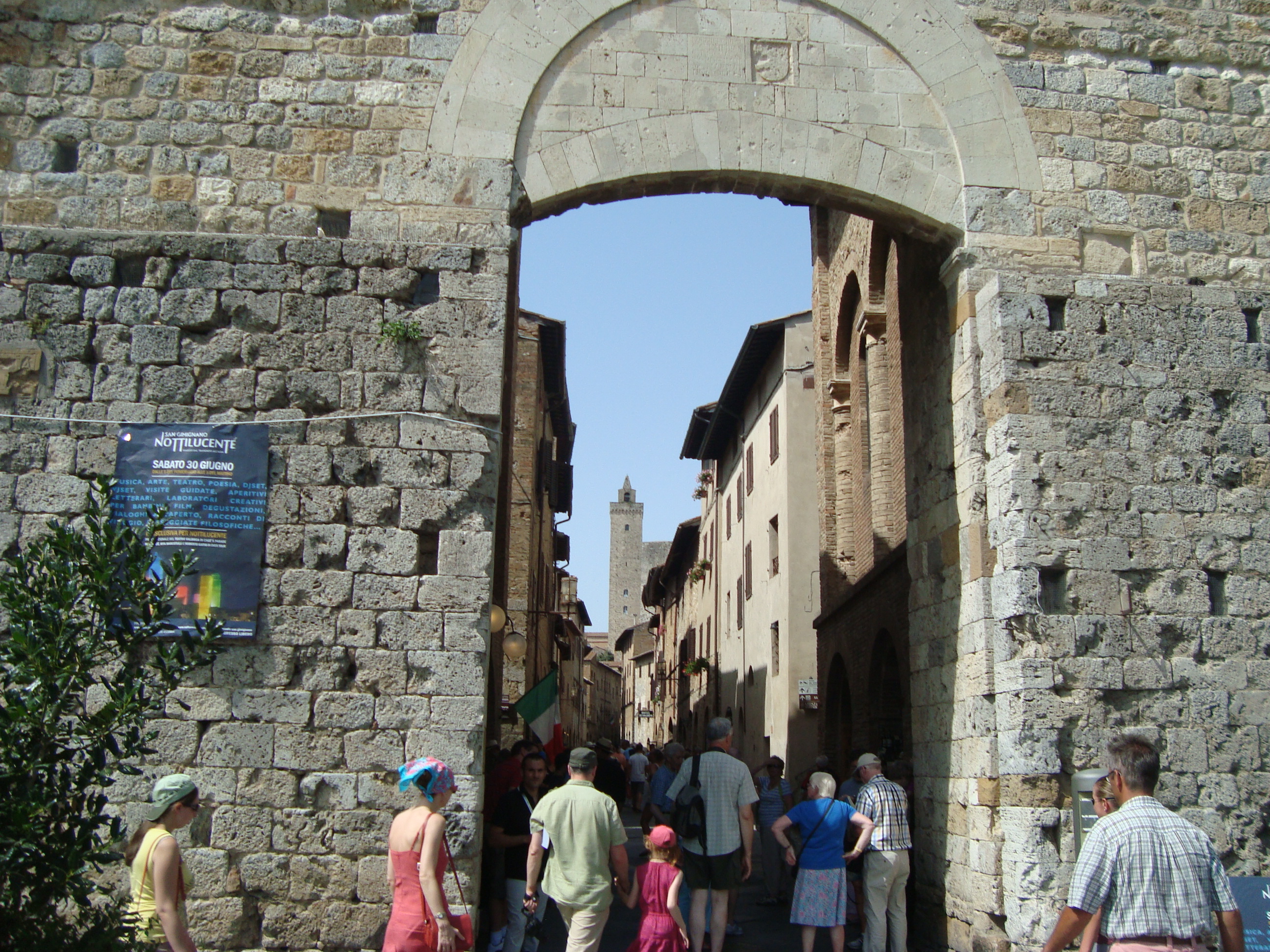 Condusul prin Toscana vara, pe la țară e o adevărată placere. Sate pitorești, dealuri verzi și câmpuri nesfârșite de viță de vie (era sezonul și doar traversam regiunea Chianti). La vreo 50 de kilometri de Siena se află un loc chiar minunat, orășelul San Gimignano.