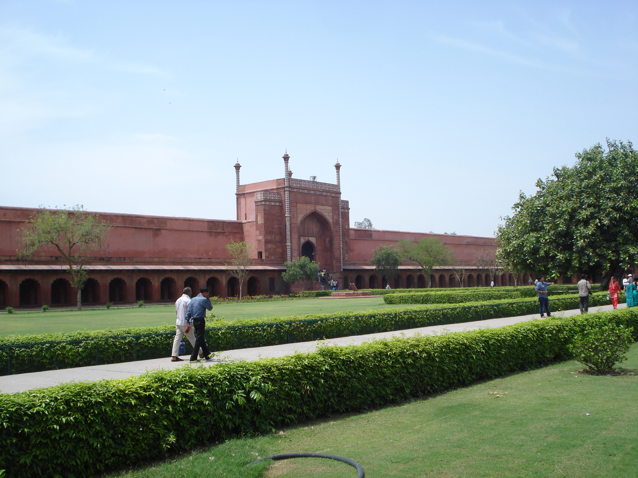 Am mai vizitat la final fortul din Agra. Fortul a fost construit în secolul 11 fiind cucerit de moguli 5 secole mai târziu. Datorită poziției strategice defensive, a fost ales centru al puterii imperiului, capitala fiind adusă la Agra. Zidurile au fost întărite, devenind una din cele mai sigur fortificații din lume în acele vremuri. Intrarea la fort este inclusă în biletul la Taj Mahal. Construcția face parte din patrimoniul mondial UNESCO fiind renovată recent. După ce am trecut de poarta masivă, am vizitat grădinile interioare și locul unde Shah Jahan și-a petrecut ultimii ani din viată. Nu am rămas totuși prea mult pe la fort deoarece căldura era deja insuportabilă. Ne-am întors la mașină iar după amiaza eram înapoi la Delhi.
