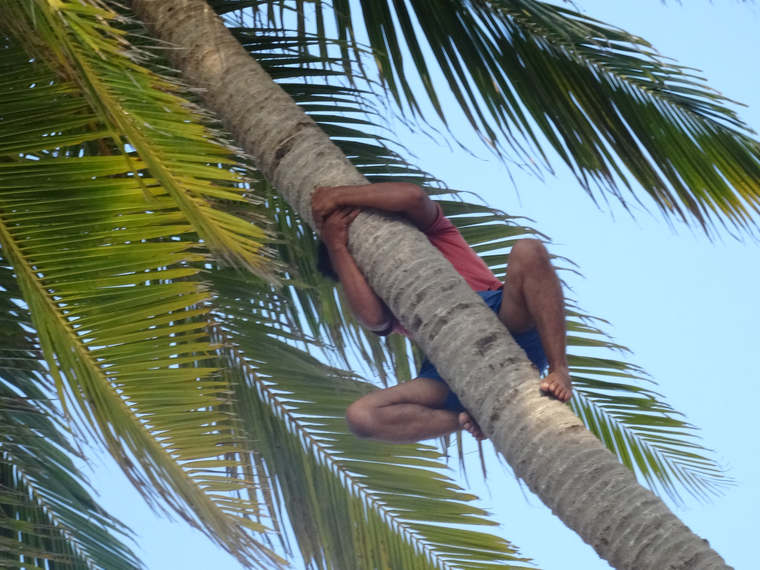 Plaja turistică era de parte cealaltă a insulei, adică la 200 de metri distanță. Era incredibil de frumoasă. Prietenul nostru srilankez venea cu noi în fiecare dimineață cu umbrele de plajă ca să ni le instaleze. Nisip alb, palmieri lăsați de vânt și apă de o culoare splendidă. Pentru a ajunge la apă adâncă se mergea până oboseai, sute de metri buni. Aveam un resort în față la vreo 2 kilometri și cred că puteam ajunge pe picioare la el dacă ne chinuiam să traversăm printre corali. Pești erau mai peste tot, colorați, mai mici, mai mari. Venisem cu echipament de snorkeling dar nu am avut mare nevoie de ei pentru că se vedea perfect prin apa cristalină. Pe plaja deloc aglomerată a fost o relaxare totală neîntrerupta decât de vreo două ori când niște localnici s-au urcat în copaci ca să culeagă nucile de cocos iar lumea admira uimită viteza lor de cățărare fără nicio asigurare.
