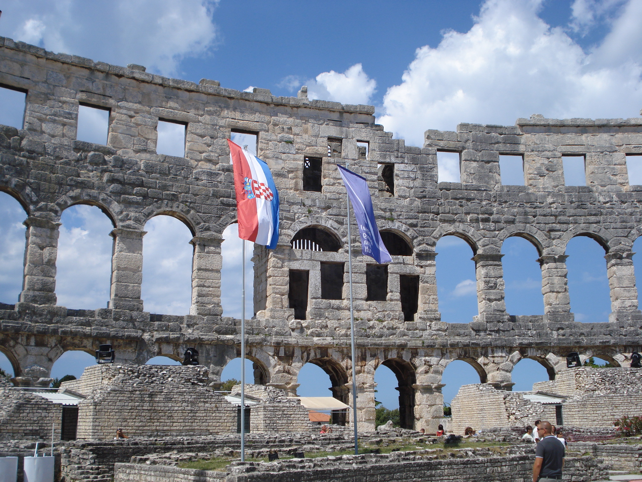 Prima oprire a zilei a fost o localitate al cărui nume stârnește zâmbete pe la noi. E vorba de cel mai mare oraș provinciei Istria, portul Pula. Dincolo de numele cu conotații în limba română, Pula este un centru turistic important cu o veche istorie încă de pe vremea romanilor. Centrul istoric încă adăpostește multe rămășite arhitectonice antice, iar de departe cel mai vizitat dintre acestea este Amfiteatrul roman construit în anul 27 î.e.n. Cunoscut și ca Pola, numele său latin, orașul este un centru multicultural păstrând multe aspecte culturale italiene, pentru că Istria a făcut parte din Republica Veneția și mai târziu din Italia până după al doilea război mondial când peninsula a fost alipită la Iugoslavia. Istria mai adăpostește și câteva sute de istro-români, un popor care și-a păstrat dialectul asemănător cu limba noastră chiar și astăzi.