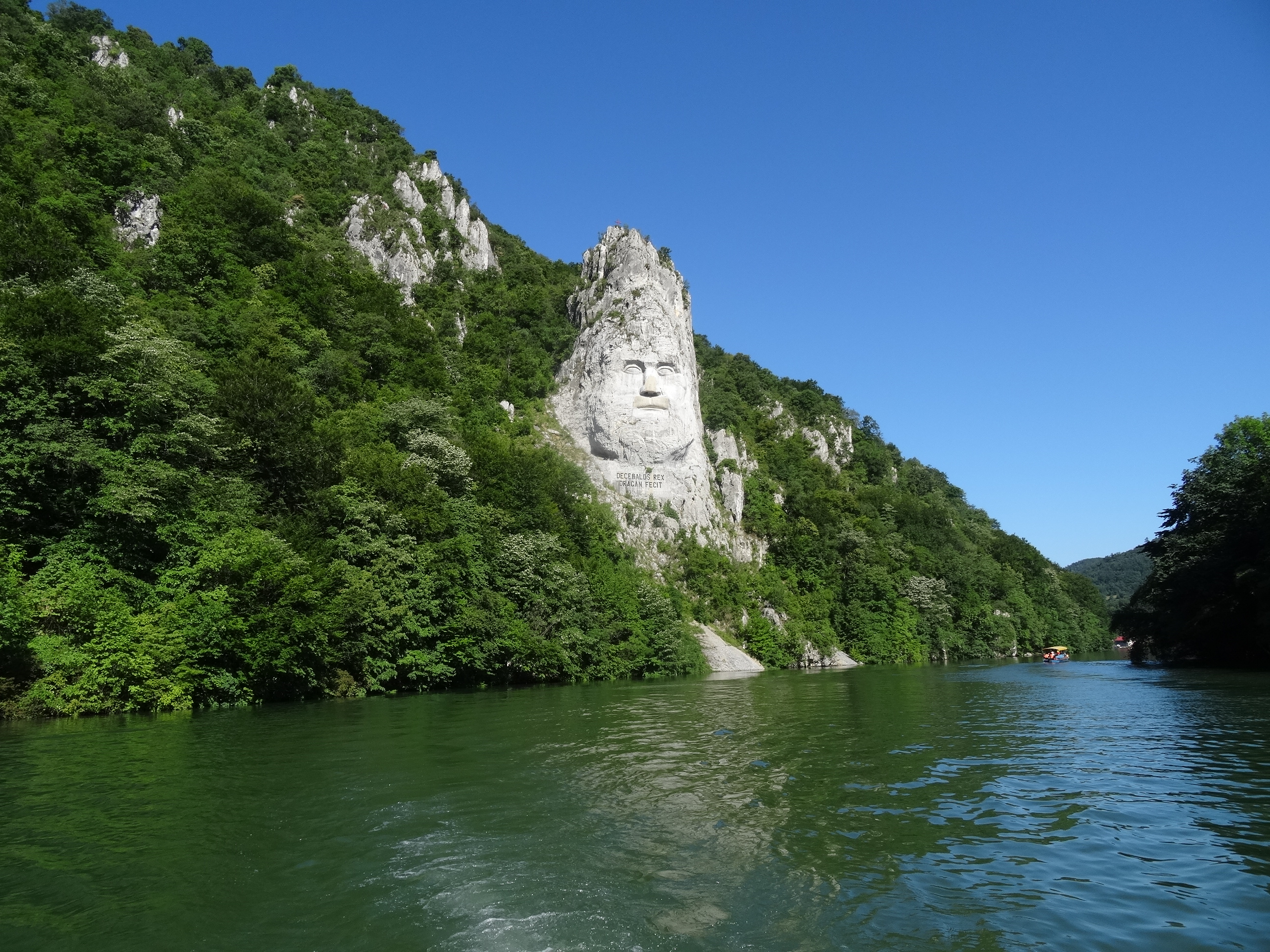Mai apoi am vorbit despre impozanta statuie a lui Decebal, cea mai mare sculptură din România care domină întregul peisaj al cazanelor. Aceasta a fost construită pe parcursul a zece ani între 1994 și 2004. Construcția a fost finanțată de Iosif Constantin Drăgan, la acea vreme considerat cel mai bogat român. Chiar dacă Drăgan este un personaj controversat, simpatizant al gărzilor de fier și cu afaceri mai mult sau mai puțin dubioase, este totuși extraordinar că a dorit și a reușit să lase în urmă acest simbol măreț dedicat istoriei române. Drăgan s-a stins din viață în 2008, milioanele de euro s-au împărțit dar marea statuie de la Dunăre a rămas în urmă așa cum scrie sub construcție – „Decebalus Rex, Drăgan Fecit” adică Regele Decebal, făcut de Drăgan. Basorelieful are 55 de metri înălțime și este cea mai înaltă sculptură în piatră din Europa.