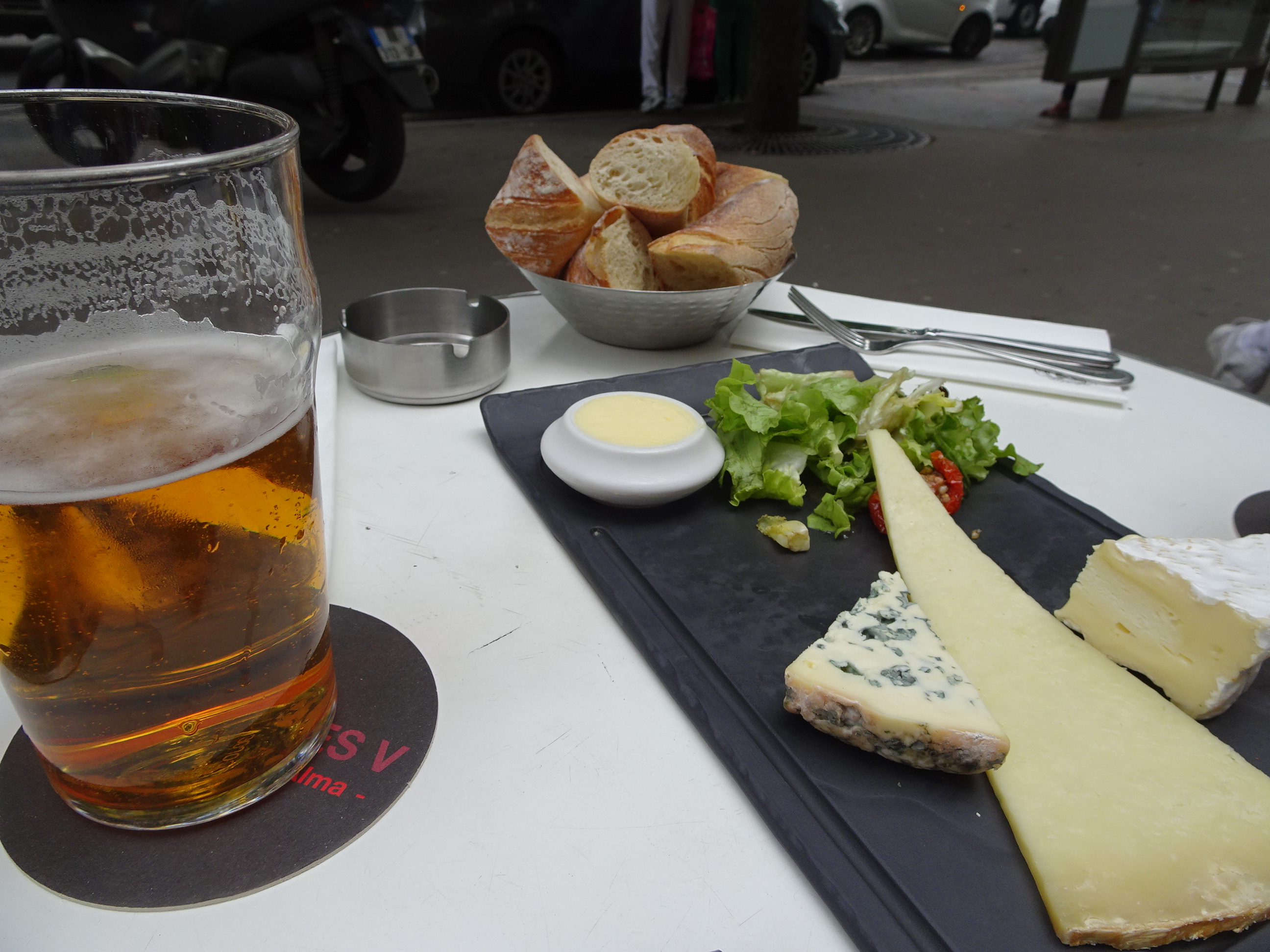 La Porte Maillot ne-am așezat la prima terasă întâlnită în cale. Cafeneaua era decorată cu steaguri și însemne ale echipelor participante la Euro. Mai erau câteva mese de suporteri la terasa noastră inclusiv câțiva croați puși pe băut. Am luat și noi o bere mare și o gustare. N-am întrebat de prețuri și la final am aflat surprinși că o bere era 11 euro! Am observat mai târziu că mai peste tot prin Paris preturile fuseseră umflate serios în așteptarea turiștilor la Euro.