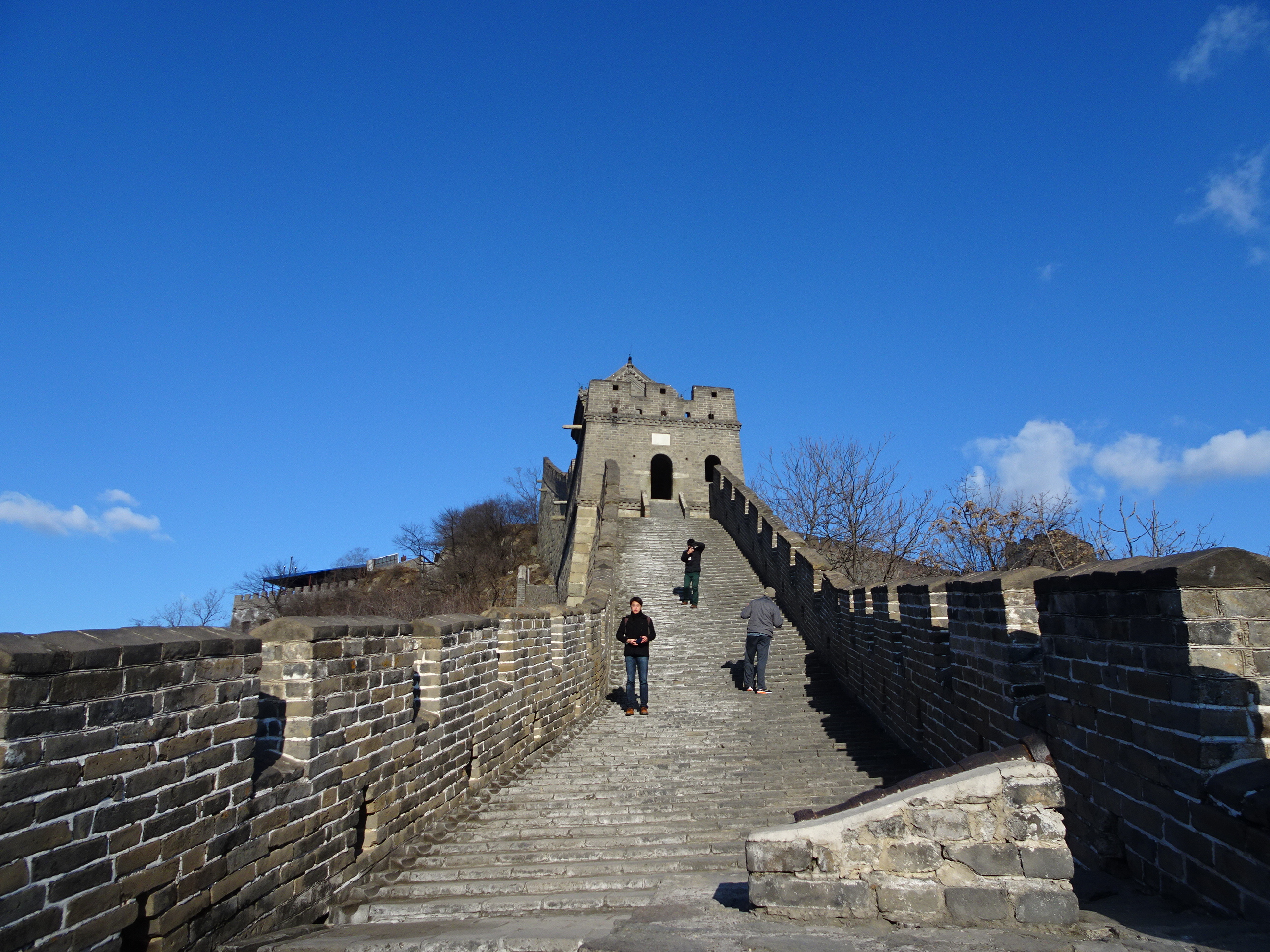 Am mers kilometri buni pe zid. Am vrut să fac niște mișcare și am reușit să merg la ambele extremități accesibile de la Mutianyu. Poate părea ușor, dar nu e chiar așa pentru că pe alocuri zidul este extrem de abrupt și presupune ceva efort. La final, am preferat o altă opțiune de coborâre în locul telescaunului. De la Mutianyu se poate coborî cu o sanie cu roți pe un tobogan metalic. Este o experiență ce presupune ceva adrenalină pentru că se pot atinge viteze foarte mari. Eu am coborât ușor cu frâna trasă dar când au început să apară alții în spate n-am avut de ales și a trebuit să accelerez. Am ajuns în cele din urmă cu bine, câteva zeci de viraje mai târziu. Am mers apoi direct la masa de prânz unde din meniul cu poze (și nimic în engleză) am reușit să comand un pui kung pao și dim sum.