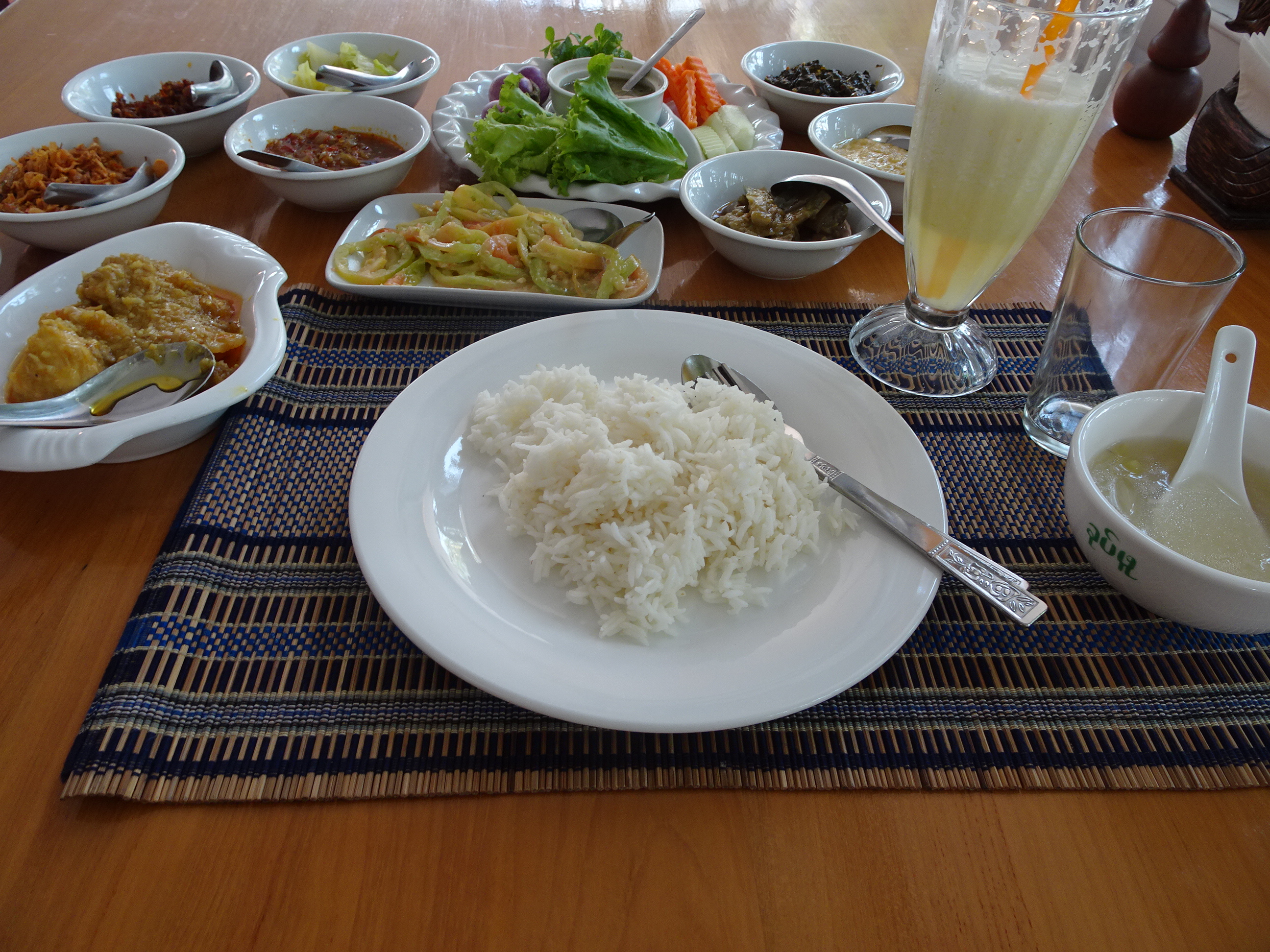 După atâta vizitat mi se făcuse foame. L-am rugat pe Soe, șoferul meu să ne îndreptăm spre un restaurant. Am subliniat – neapărat să fie curat. Mi-a spus că îmi recomandă un loc dar m-a avertizat că este foarte scump. I-am confirmat că e ok și am mers acolo. A fost un adevărat festin. Am mâncat un curry de pui delicios însoțit de vreo zece alte farfurii cu sosuri și salate, am băut fresh de banane iar la final am fost servit cu mai multe deserturi tradiționale unul mai bun ca altul. Masa aceasta la restaurantul „cel scump” m-a costat 6 dolari. Asta ca să vă faceți o idee de costurile din Myanmar.