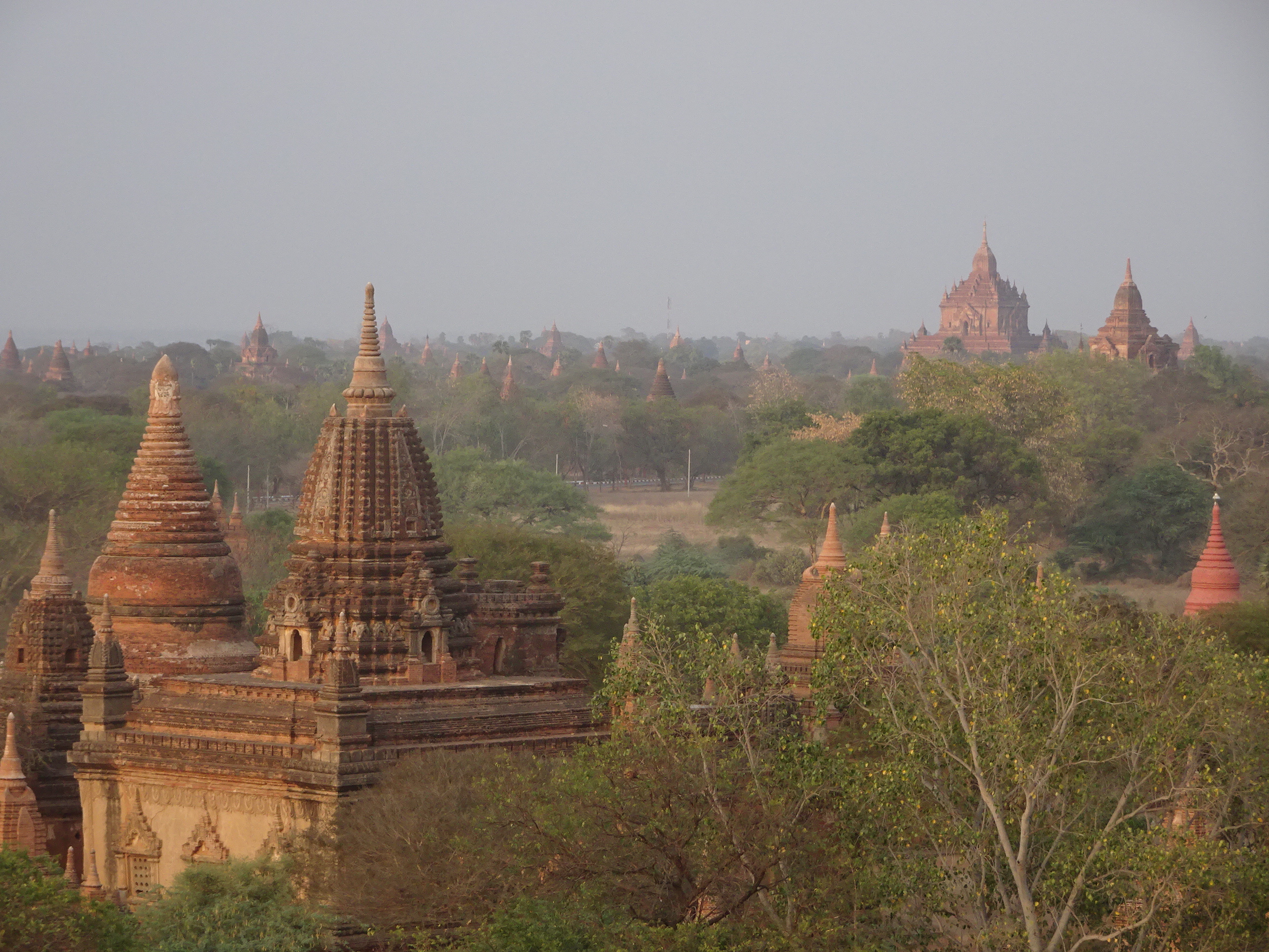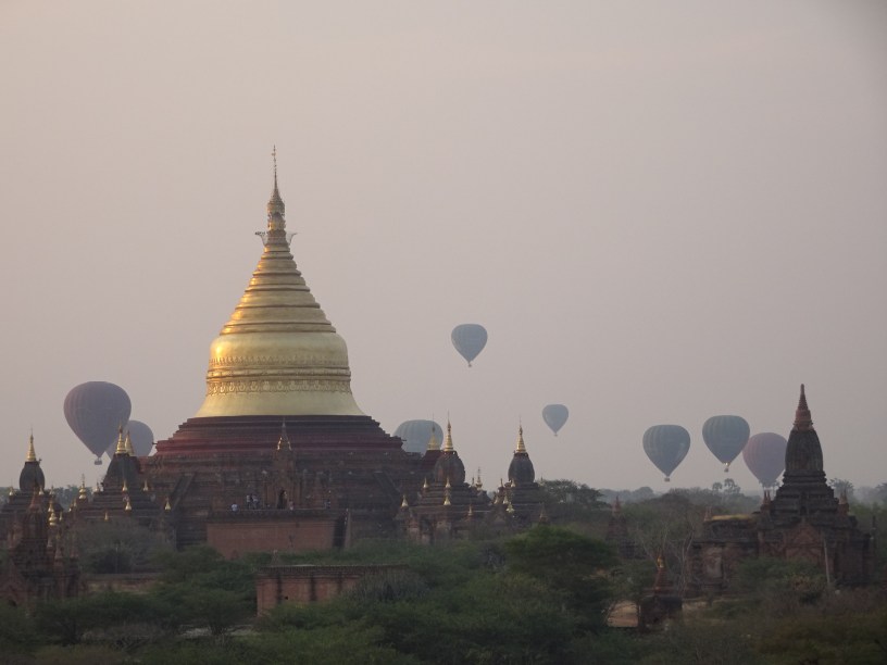 Seara am revenit la hotel și primul lucru am rezervat un tur dimineața următoare la răsărit. Din motive lesne de imaginat, nu atât de multi turiști se înghesuie să vadă răsăritul – presupune să te trezești cu noaptea în cap și să stai uneori în frig până își face soarele apariția. La Bagan, e ceva mai special pentru că pe lângă soare și culorile cerului se pot vedea zilnic și câteva zeci de baloane cu aer cald. Sincer să fiu aș fi vrut să văd răsăritul chiar din balon, dar prețul foarte mare (aproximativ 300 de dolari pentru o călătorie de o oră) m-a făcut să ezit să rezerv o călătorie. Până m-am gândit eu să merg am aflat că o rezervare se poate face doar cu câteva zile înainte și era oricum prea târziu. Nu-i bai, la un moment dat o să ajung prin Capadoccia unde se poate merge cu balonul ceva mai aproape, prețul e mult mai mic și bănuiesc peisajul la fel de frumos. Rămânea așadar să fac doar o plimbare la un templu „de răsărit” la care am adăugat o călătorie până la muntele Popa.