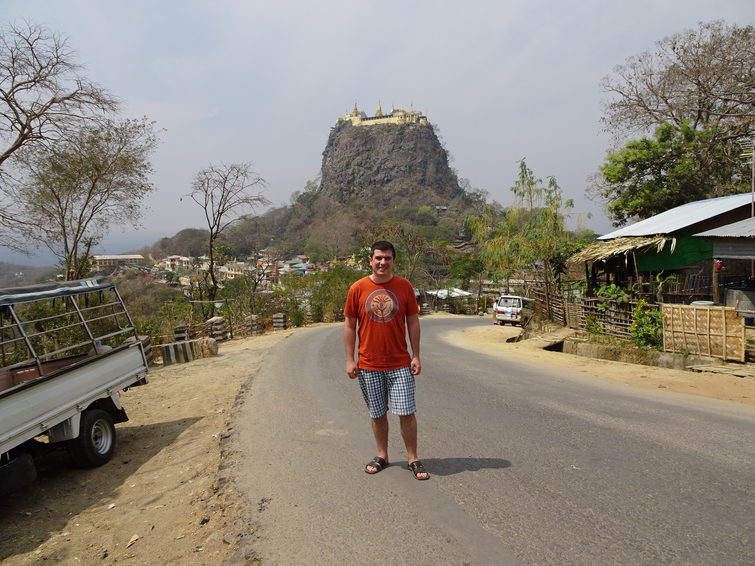 După plimbarea matinală am revenit la hotel pentru a servi micul dejun iar o oră mai târziu am plecat din nou la drum spre muntele Popa. Se merge cam o oră și jumătate pentru a parcurge cei 60 de kilometri până la munte. Acesta este faimos datorită unui mare templu aurit construit în vârful uneia din cele mai abrupte stânci din regiune. Popa este unul din cele mai sfinte locuri de pelerinaj din Myanmar. Pe drum am făcut o oprire la o plantație unde se fabricau uleiuri din palmier sau din diverse rădăcini unde am observat procesul de fabricație dar am și văzut pentru prima oară cum arată unele plante pe care le întâlnim zilnic pe acasă în condimente sau prin produse cosmetice.