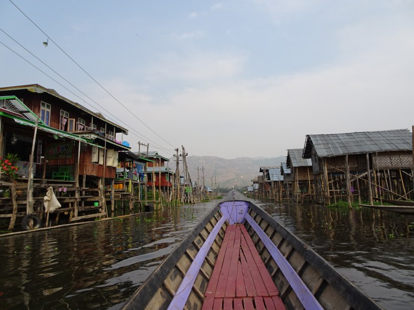 Am navigat apoi prin zona cea mai populată de pe lacul Inle cu spectaculoasele locuințe lacustre. Legenda spune că un împărat al Burmei, în urma unei înfrângeri în război, i-a condamnat pe locuitorii statului Shan să nu mai pună piciorul pe pământul lui. Ei au luat asta mot-a-mot și și-au mutat casele pe apa puțin adâncă de pe lacul Inle. Legendă sau adevăr, ce e drept aceștia au reușit să își construiască o adevărată cultură pe apă și să creeze așezări de o frumusețe rară.
