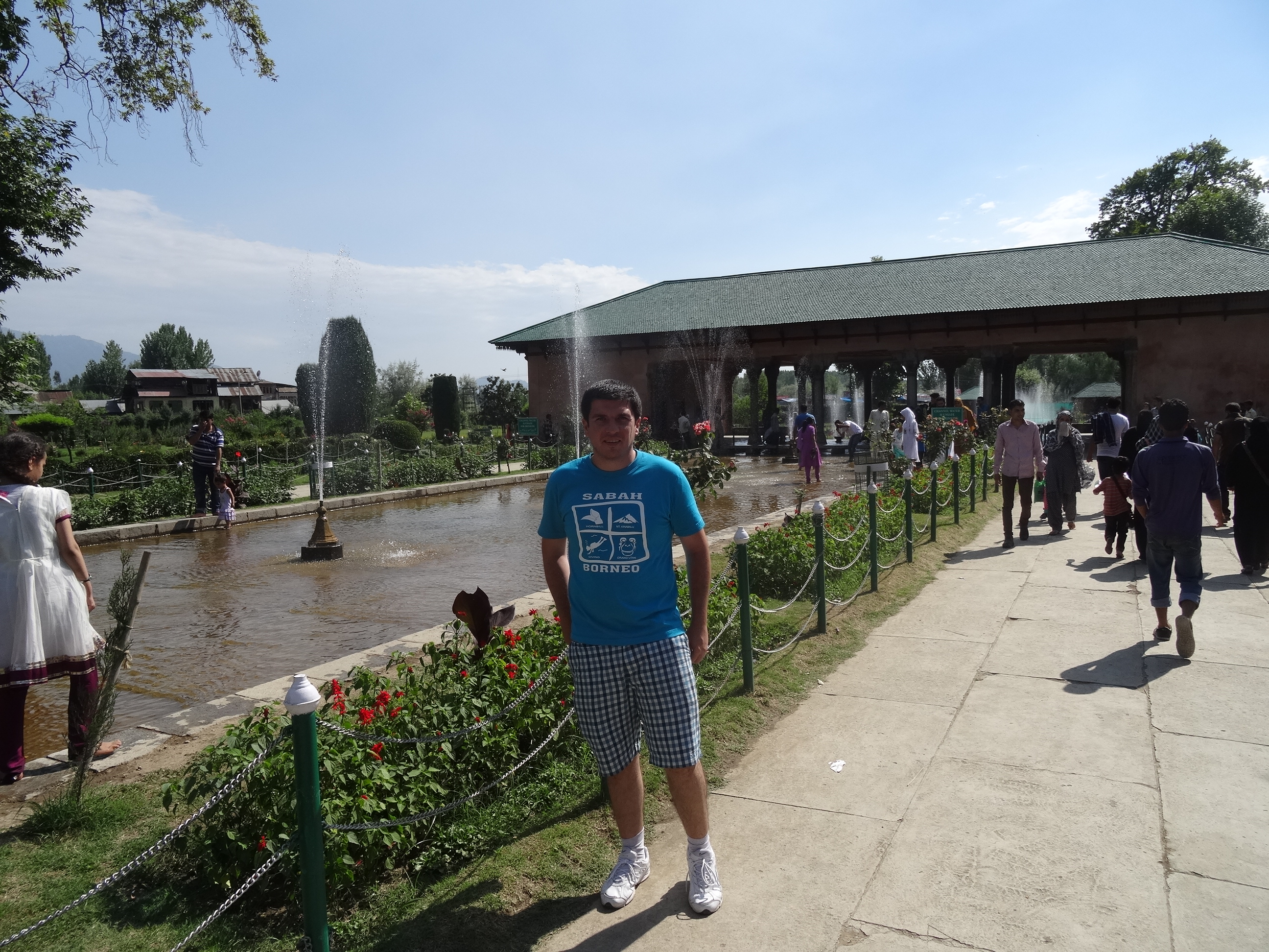 Patronul a venit personal cu noi să ne fie ghid. Am făcut o plimbare de vreo două ore cu mașina. Prin oraș există foarte multe palate și grădini impozante construite în secolele 15-17 pe vremea împăraților moguli. Am vizitat mai întâi grădinile Shalimar Bagh, un parc cu fântâni arteziene, lacuri artificiale și foișoare frumos decorate. Grădinile sunt un loc preferat pentru localnici pentru o plimbare la adăpost de căldură. Erau 40 de grade afară iar unii copii nu mai rezistau caniculei și s-au aruncat direct în apă. Mai apoi am mers la palatul Pari Mahal, construit pe unul din dealurile înalte de la marginea orașului. Am văzut acolo niște grădini frumoase și am putut observa vizitatori localnici îmbrăcați foarte elegant dar și priveliștea deasupra orașului. Pari Mahal e unul din cele mai bune locuri pentru o vedere peste Srinagar.