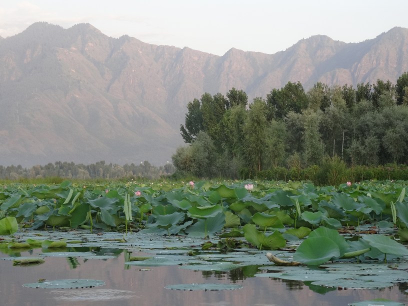 Am revenit la hotel după tura de oraș. Urma cireașa de pe tort: plimbarea pe lacul Dal. Barca ne-a luat chiar de la ușa sufrageriei noastre iar băiatul a sosit cu marfa mult așteptată: berea Kingfisher luată pe „sub mână” (a fost de altfel una din cele mai scumpe beri pe care le-am luat în lume). Am mers mai întâi pe micul lac unde eram noi ancorați, Nageen, iar după ce am trecut pe sub un pod s-a deschis sub ochii noștri marele lac Dal, plin de nuferi colorați. Imaginați-vă că Delta Dunării s-ar afla la Bușteni la poalele Bucegilor – cam asta e lacul Dal, un loc de o frumusețe rară. Am navigat vreo oră pe lac, iar turul l-am încheiat urmărind culorile apusului reflectându-se pe apă. La întoarcere am dat și de mai mulți comercianți pe bărci care vindeau de toate (dacă n-am ajuns noi la bazar, a ajuns bazarul la noi) și cu ocazia asta luat mai multe cadouri pentru acasă, inclusiv renumitele eșarfe din lână de cașmir după o negociere asiduă.
