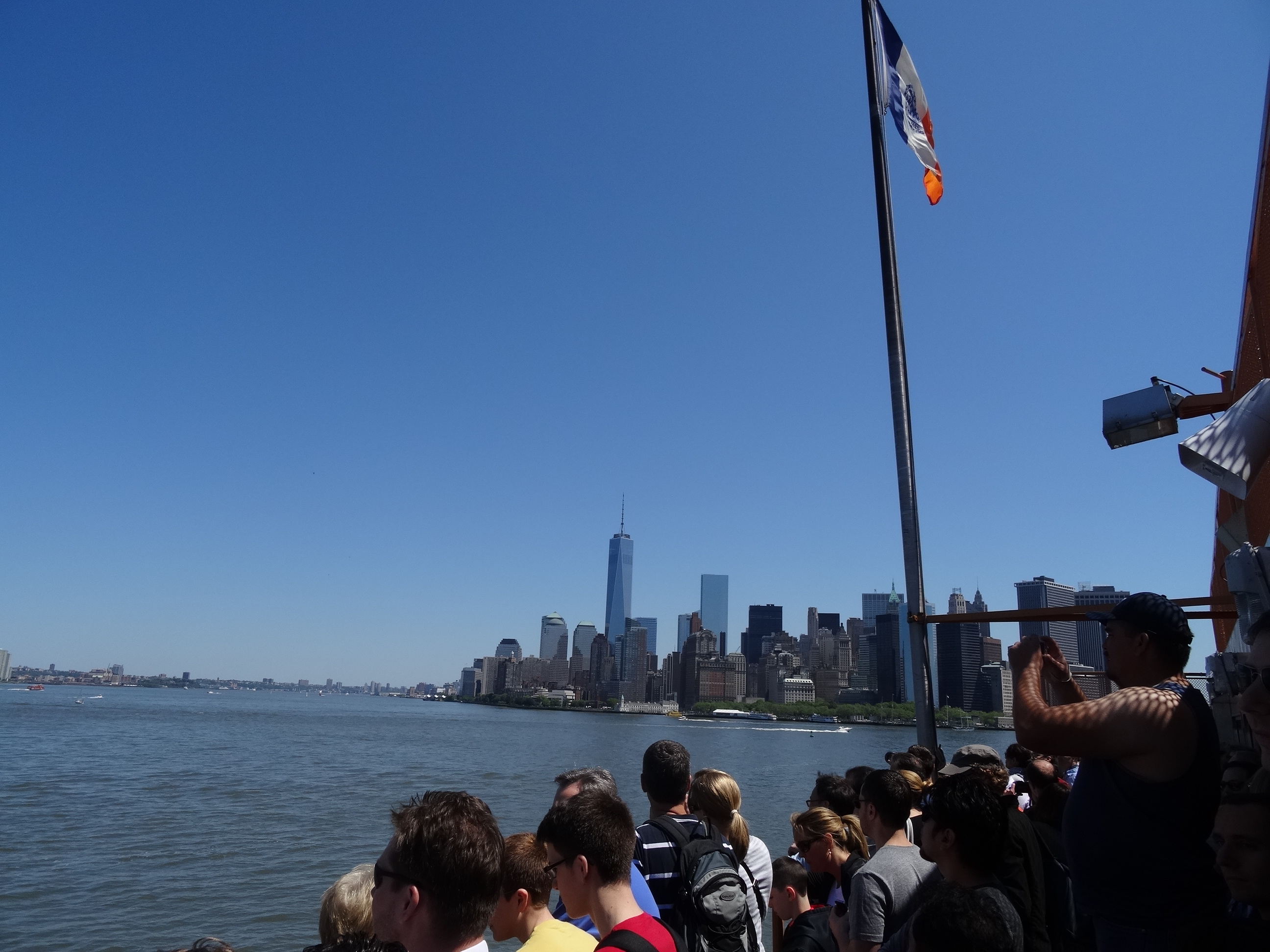 Ziua următoare am avut complet altă vreme cu un soare puternic. Era prin luna mai și afară erau peste 25 de grade, o vreme ideală. Am mers cu mașina spre partea de sud a insulei Manhattan în apropiere de districtul financiar. Parcarea pe insulă e foarte complicat de găsit și extrem de scumpă. Am găsit cu greu o parcare subterană unde am plătit vreo 30 de dolari pentru câteva ore. De acolo am luat-o la pas spre extremitatea sudică de unde pleacă feribotul spre Staten Island.