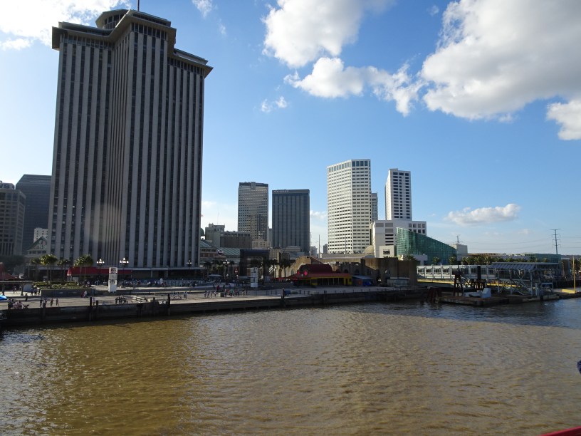 M-am îndreptat mai întâi spre malul fluviul Mississippi. Sunasem deja pentru o rezervare la o croazieră cu vaporul pe fluviu. Nu era orice vapor, ci renumitul Steamboat Natchez, cel mai mare vapor cu aburi și zbaturi care încă este folosit în prezent. Am ridicat repede biletele rezervate (32 $) și imediat a început îmbarcarea pe vapor. Croaziera pe care am mers se numea Harbor Jazz Cruise și timp de două ore se făcea turul ghidat al regiunii la nord și sud de downtown în acompaniamentul unui formații de muzică jazz. Vremea era numai bună – 20 de grade cu soare – și am putut cu adevărat savura plimbarea. Am aflat multe despre istoria orașului, despre muzica jazz sau despre distrugerile provocate de uraganul Katrina (unele încă se mai văd) și am putut asculta muzică bună admirând roata cu zbaturi care ne împinge mai departe pe fluviu.