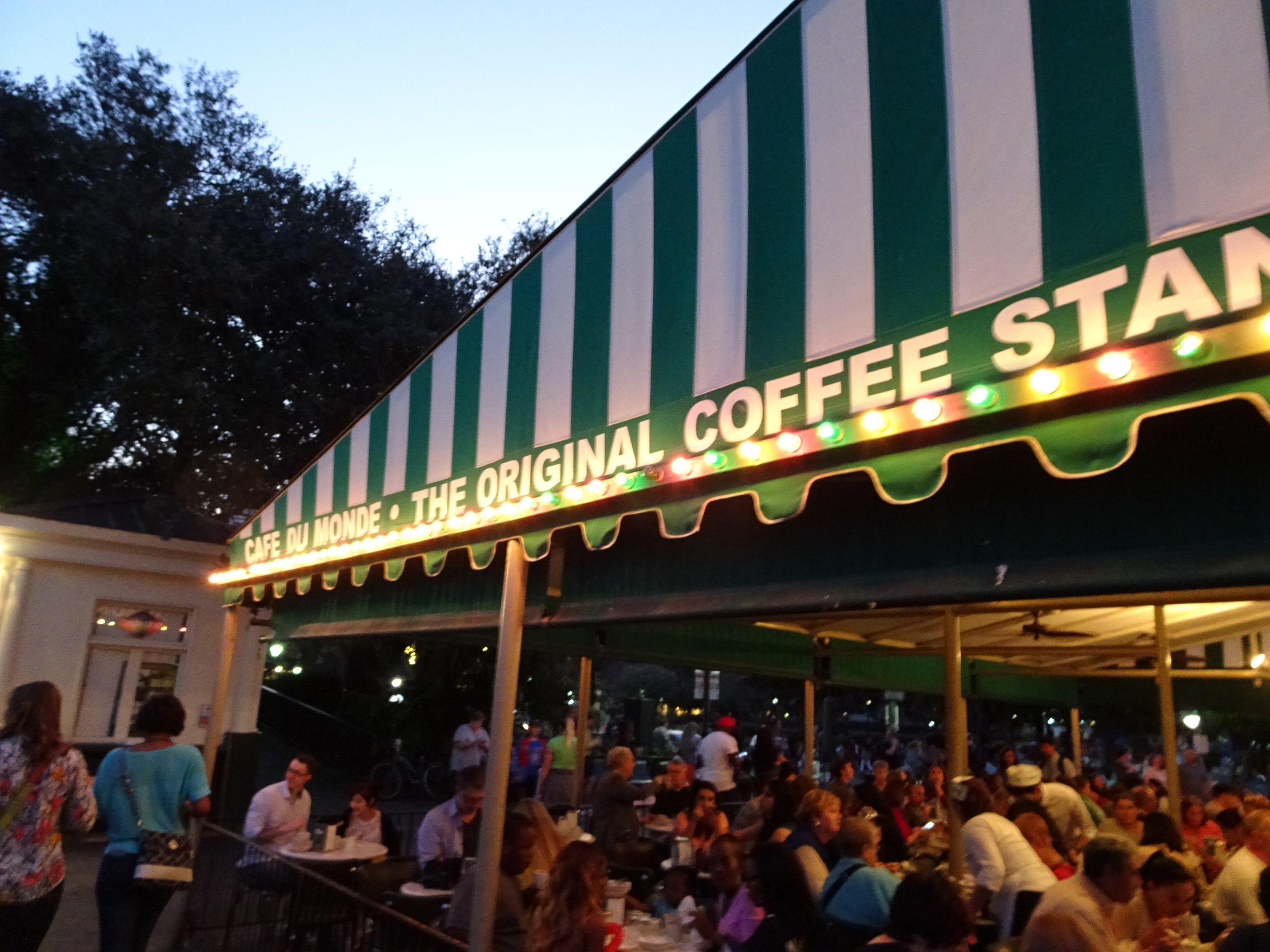 Mai târziu am revenit în oraș și am continuat plimbarea prin French quarter. Printre clădirile vechi vopsite colorat cu balcoane decorate și flori am mai admirat zecile de formații de jazz care cântau pe străzi și ghicitoarele creole care aminteau de obiceiurile voodoo. Am mai vizitat catedrala catolică și muzeul orașului, pentru ca apoi să ajung pe Bourbon Street, sufletul petrecerilor din oraș. Nu se lăsase încă seara dar pe stradă era deja haos – plin de petrecăreți peste tot. Este o tradiție pe Bourbon ca de la terase să se arunce cu șiraguri de mărgele, iar fetele care le primesc să își arate decolteurile („flash for beads”) dar asta o fac doar cei mai beți dintre trecători. Indiferent, mărgele primește toată lumea. Mai pe seară lucrurile începeau să degenereze pe stradă și am plecat mai departe. Am încheiat seara la Cafe du Monde, cel mai renumit local din New Orleans, unde se pot cumpăra beignettes (gogoși franțuzești îmbibate în zahăr) alături de o cafea renumită. Toată lumea laudă cafeaua excepțională de acolo, dar realitatea este că e un espresso normal pe care îl puteți întâlni pe oriunde prin Europa, doar că în general cafeaua prin America e oribilă(mă puteți crede pe cuvânt) și aceea ar fi una dintre excepții.