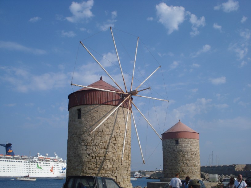 Să încep cu Rodos Town. Orașul este foarte pitoresc, încărcat cu multă istorie și cu mai multe clădiri și construcții vechi care merită văzute. Rodos este probabil cel mai cunoscut pentru Colos – uriașa statuie care făcea parte din cele 7 minuni ale lumii antice. Colosul din Rodos nu mai există, dar în port se poate vizita un muzeu și se pot vedea monumentele care acum stau unde se presupune că ar fi stat picioarele statuii, pe sub care soseau vasele care ancorau în port. Tot în port se pot vedea cele 3 mori de vânt, dar și sutele de iahturi luxoase care ancorează de obicei acolo.