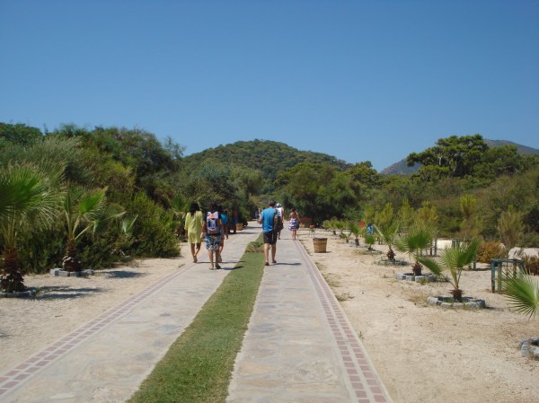 Deasupra am pus o imagine de pe net a plajei din Oludeniz văzută de sus – asta pentru că din pozele mele poate nu se vede cât de frumos este locul. Blue Lagoon este un golf protejat de munți înalți cu o limbă lungă de nisip care este înconjurată din 3 părți de cea mai turcoaz apă pe care o are Mediterana. Accesul la plajă se face cu o taxă de intrare și până în vârful peninsulei se merge cam un kilometru. Zona este plină de faună – păuni și fazani mișună printre palmieri, iar în apă se pot vedea mii de pești de toate culorile. Nisipul este fantastic de fin iar apa este mai clară decât oriunde altundeva în Europa. Am stat la plajă acolo vreo două ore și am fi stat mult mai mult, dar din păcate trebuia să prindem feribotul înapoi spre Rodos. Nu știu dacă este chiar cea mai frumoasă plajă din lume, dar cu siguranță din Turcia și una din cele mai frumoase de pe continent.