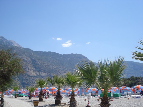 Fethiye este una din cele mai deosebite destinații turistice ale Turciei – un loc cu multă istorie (acolo era cândva veche așezare grecească Telmessos) într-un cadru natural fantastic unde se află unele din cele mai frumoase plaje ale Turciei. Am mers mai întâi să vedem vechile ruine – am vizitat amfiteatrul Telmessos iar apoi am văzut impresionantele morminte lyciene săpate în stânca munților. De acolo ne-am separat de grupul german. Ei și-au continuat turul prin oraș iar noi am luat un maxi-taxi (dolmuș) până la Oludeniz, o localitate pe coastă la 12 kilometri unde se află una din cele mai frumoase plaje din lume, Blue Lagoon.