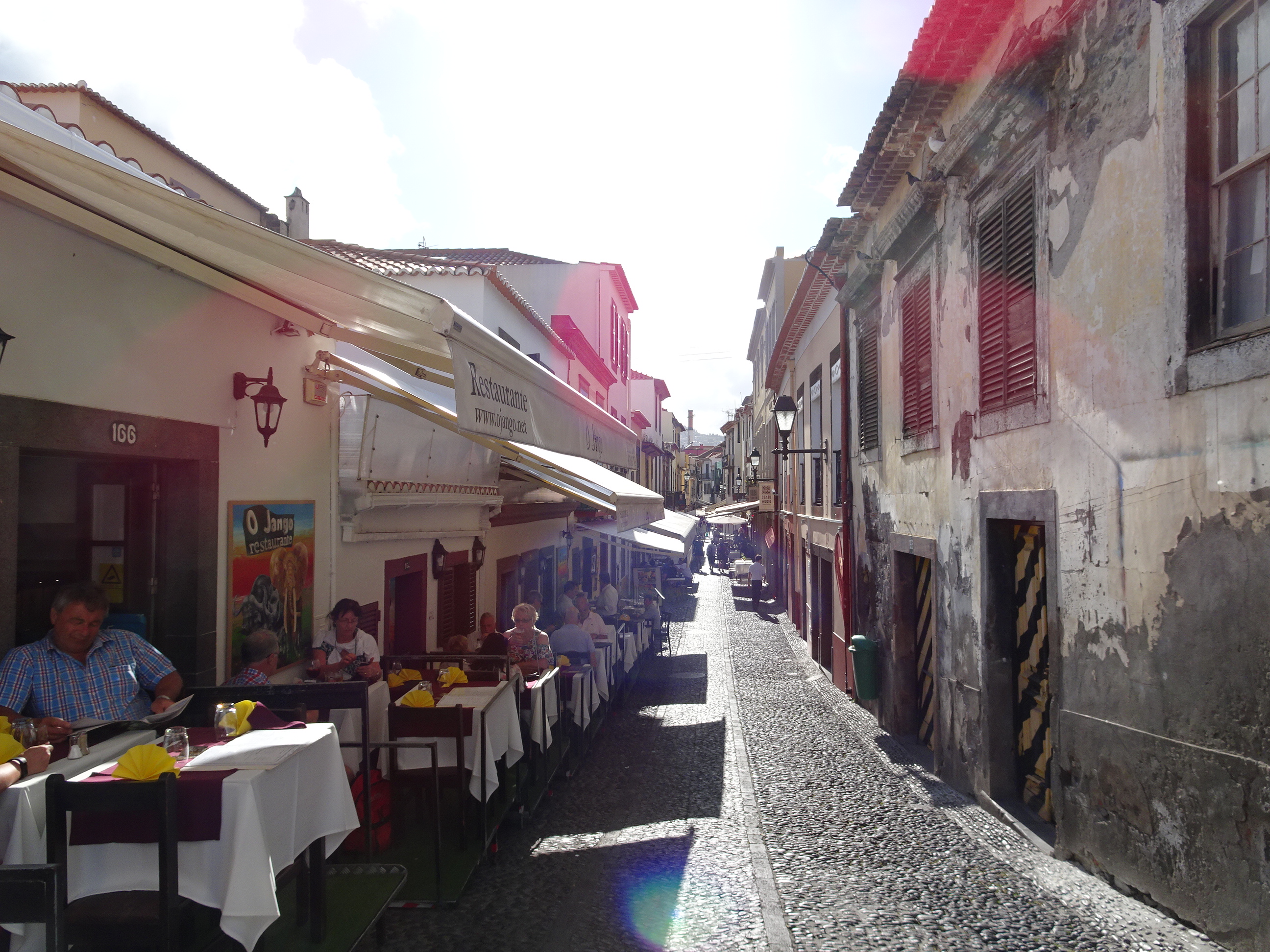 Apartamentul nostru era undeva în vestul orașului, dar nu suficient de aproape încât să mergem pe jos. Prima oară am văzut orașul sâmbăta, a doua zi după sosire. Am oprit în centru dimineața în apropiere de primărie. Acolo, în piața centrală a orașului, avea loc festivalul copiilor, adică mai multe concerte pe scena mare amplasată și decorarea zidului florilor. Wall of Flowers este o traditie din festival ce are loc sâmbăta la ora prânzului, când toți copii din Madeira vin în Praca do Municipio din Funchal cu flori pe care le așează pe un piedestal creând astfel un uriaș zid din flori. După ce am asistat la ceremonie, am mai dat o tură pe aleile pietonale din centrul vechi și pe la Mercado dos Lavoradores (piața alimentară veche) unde am admirat la treabă vânzătorii de fructe, flori sau pește proaspăt. Am trecut apoi pe la stadionul din Funchal pentru a lua bilete la meci iar restul zilei l-am petrecut în jurul insulei – iar de asta am povestit deja anterior.
