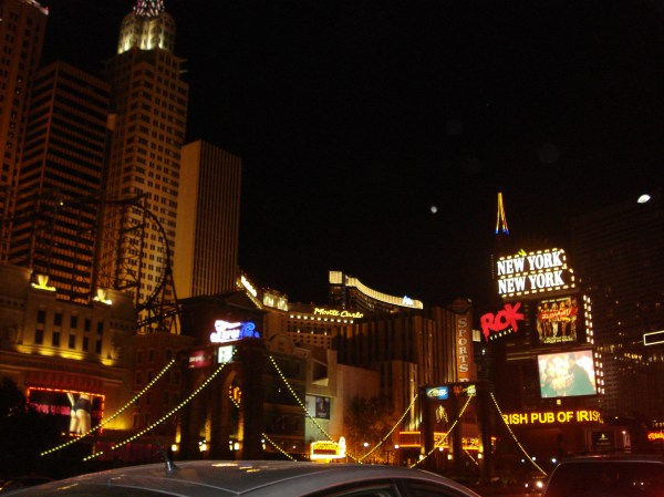 Am revenit apoi la lumină pe bulevard. Am trecut pe lângă cele mai kitsch (oribile) hoteluri din Vegas precum New York, New York și Paris, Paris ale căror construcții imită cele două mari metropole inclusiv statuia libertății și turnul Eiffel. În aceeași notă am mai văzut și resorturile Excalibur și Luxor construite asemenea unui castel medieval respectiv unei piramide din Egiptul antic. Apoi am poposit mai mult la Bellagio, cazinoul făcut faimos de filmul Ocean’s Eleven dar și de spectacolul de fântâni care are loc în fiecare oră. Am admirat fântânile muzicale, am intrat și prin hotel, iar impresia finală a fost că Bellagio e unul din locurile mai de bun gust din oraș (atât cât se poate). Mai pe seară am trecut pe la The Mirage și MGM Grand, două din cazinourile mai vechi, care au și săli mari de spectacole unde vin cele mai mari vedete ale lumii. Nume precum David Copperfield, Celine Dion, Cirque de Soleil erau la ordinea zilei între spectacolele găzduite de resorturi.
