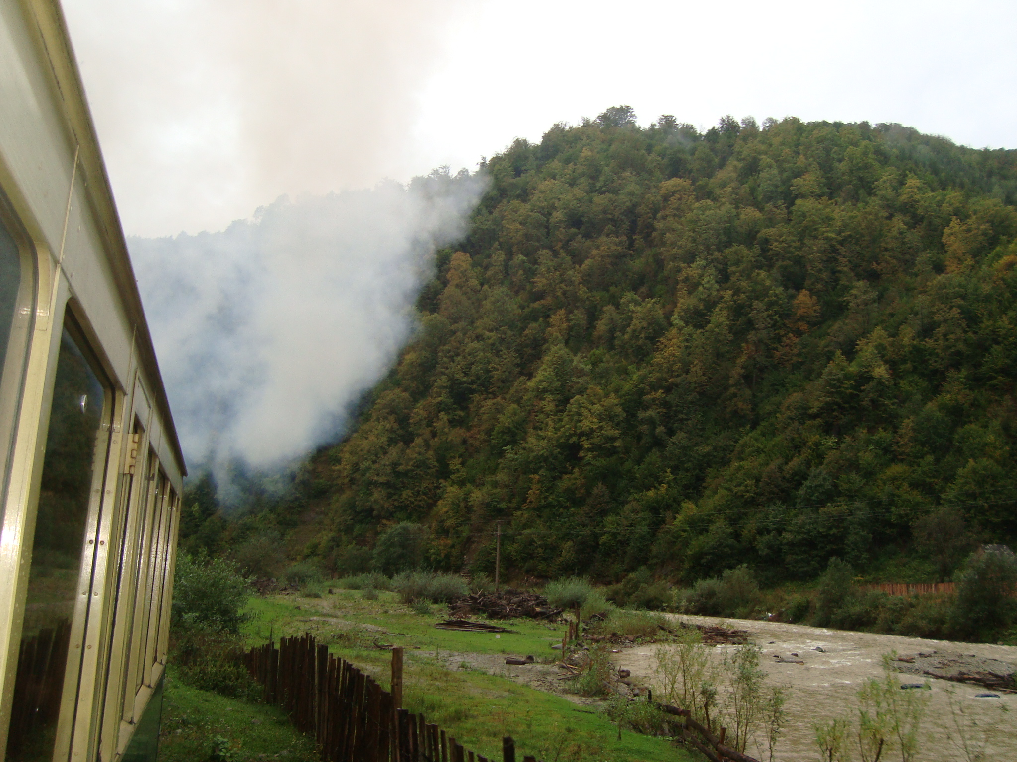Ne-am îmbarcat în vagoanele vechi cu bănci de lemn și după scurt timp am plecat la drum. Trenul merge șuierând de-a lungul văii Vaserului o zonă foarte pitorească nu departe de granița cu Ucraina. Din păcate se fac multe defrișări în zonă, dar peisajul încă mai este foarte frumos. Poate se schimbă ceva și o să rămână. Pe la jumătatea drumului am făcut o pauză. Locomotiva cu aburi Măriuța se încălzise foarte tare și avea nevoie de o răcire cu apă rece direct din rău. Măriuța și-a „revenit” destul de repede iar noi am continuat drumul. Traseul se încheie după vreo 25 de kilometri într-o poiană în apropiere de Paltin. Am stat acolo vreo jumătate de oră iar apoi am revenit spre Vișeu. Plimbarea e ca un fel de călătorie înapoi în timp, peisajele sunt grozave iar experiența de a merge cu unul din puținele trenuri cu abur încă funcționale din Europa e unică.
