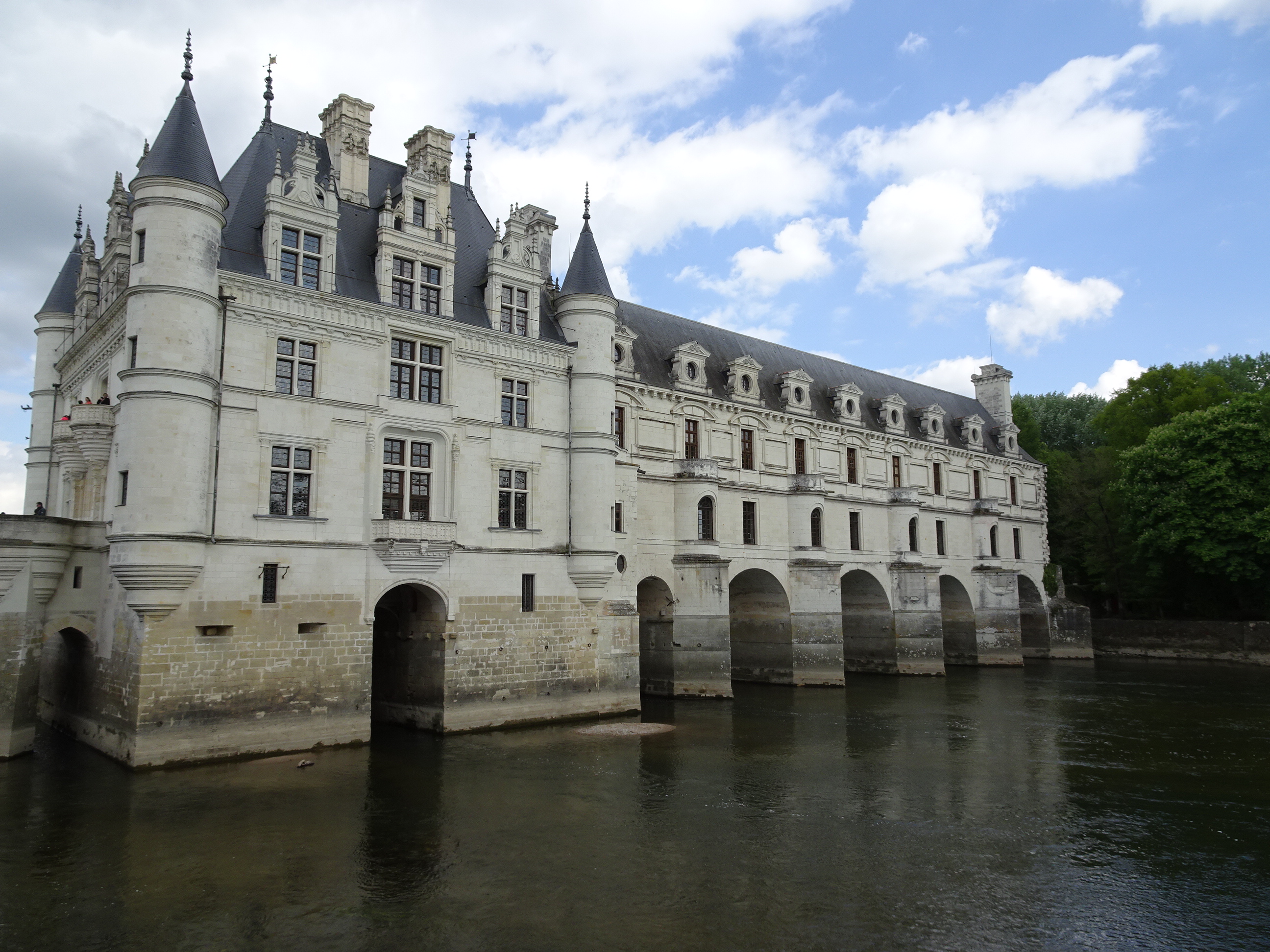 Chateau de Chenonceau este considerat de unii cel mai frumos de pe Valea Loirei, fiind al doilea cel mai vizitat castel francez după Versailles. Am constatat popularitatea sa încă de la sosire când de-abia am găsit un loc în parcarea uriașă unde opriseră multe sute de mașini. Am stat ceva la coadă și la casa de bilete (13 euro tarif întreg) iar apoi am intrat în domeniu. Locul este vast – castelul este aflat în mijlocul unei păduri care se întinde pe mai multi kilometri, iar proprietatea include grădini, domenii de vânătoare, ferme, herghelii și multe altele. Am trecut mai întâi printr-un labirint verde iar apoi ne-am plimbat prin pădure către castel. Am vizitat grădinile Caterinei de Medici decorate cu flori multicolore. Nu sunt chiar grădinile de la Villandry, dar arată fascinant și se vede cu ochiul liber că nicio floare nu este pusă întâmplator undeva și contrastele culorilor sunt gândite cu mare atenție. Din mijlocul grădinilor am văzut prima oară castelul construit chiar pe apele râului Cher.