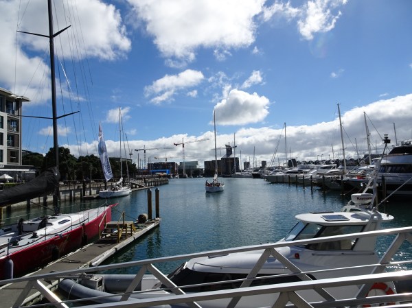 Revenind la țărm am dat o tură prin Wynyard Quarter, vechiul port industrial transformat recent în port turistic modern cu multe iahturi și veliere acostate printre terase și restaurante de lux. Este foarte interesant de văzut prin Wynyard cum diverse clădiri abandonate (depozite, hangare sau chiar containere) au fost estetizate și au primit utilitate. Am trecut pe podul pietonal Wynyard Crossing iar apoi am continuat plimbarea pe malul golfului Auckland pe promenada Waitamata, tocmai până la baza uriașului Harbour Bridge. Nu cred că am mai văzut nicăieri în lume atât de multe ambarcațiuni câte am văzut în portul din Auckland.