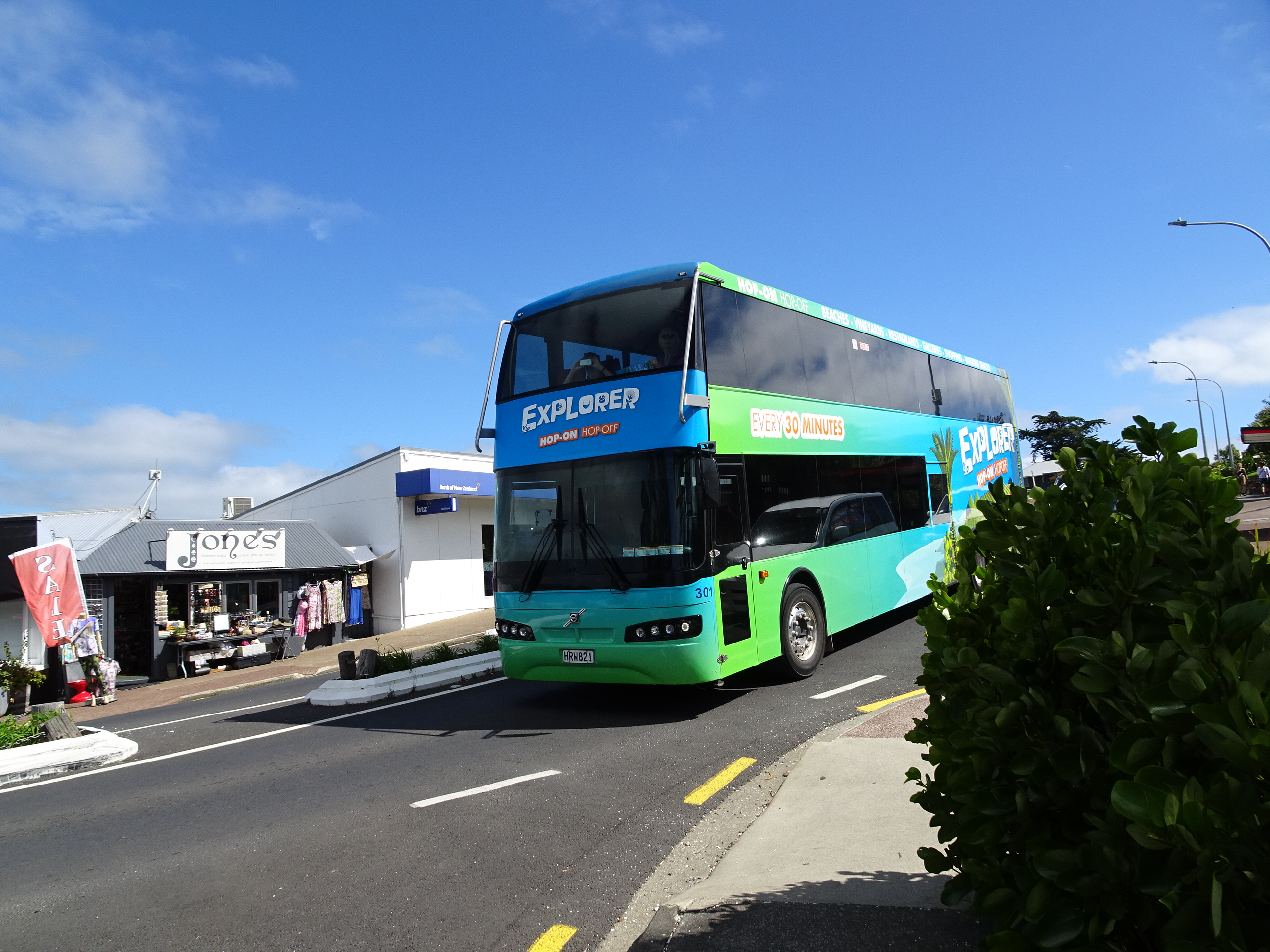 Sosind pe Waiheke ne-am îmbarcat direct în autocar și am ascultat informațiile ghidului. Pe drum am văzut multe case de vacanță, podgorii de vin și crame și golfuri pitorești la malul mării. Prima oprire a fost la Onetangi, unde se află cea mai frumoasă plajă de pe insulă ce se întinde pe 2 kilometri și are un nisip extrem de fin. Nu era vreme chiar de baie așa că nu am rămas pe plajă ci am mers la un restaurant în apropiere pentru a servi prânzul. Am mai mers pe la o altă plajă frumoasă – Palm Beach iar apoi am rămas prin Oneroa (centrul turistic al insulei). După prânz am revenit în port și am plecat spre Auckland, de data asta cu un feribot mai mare.