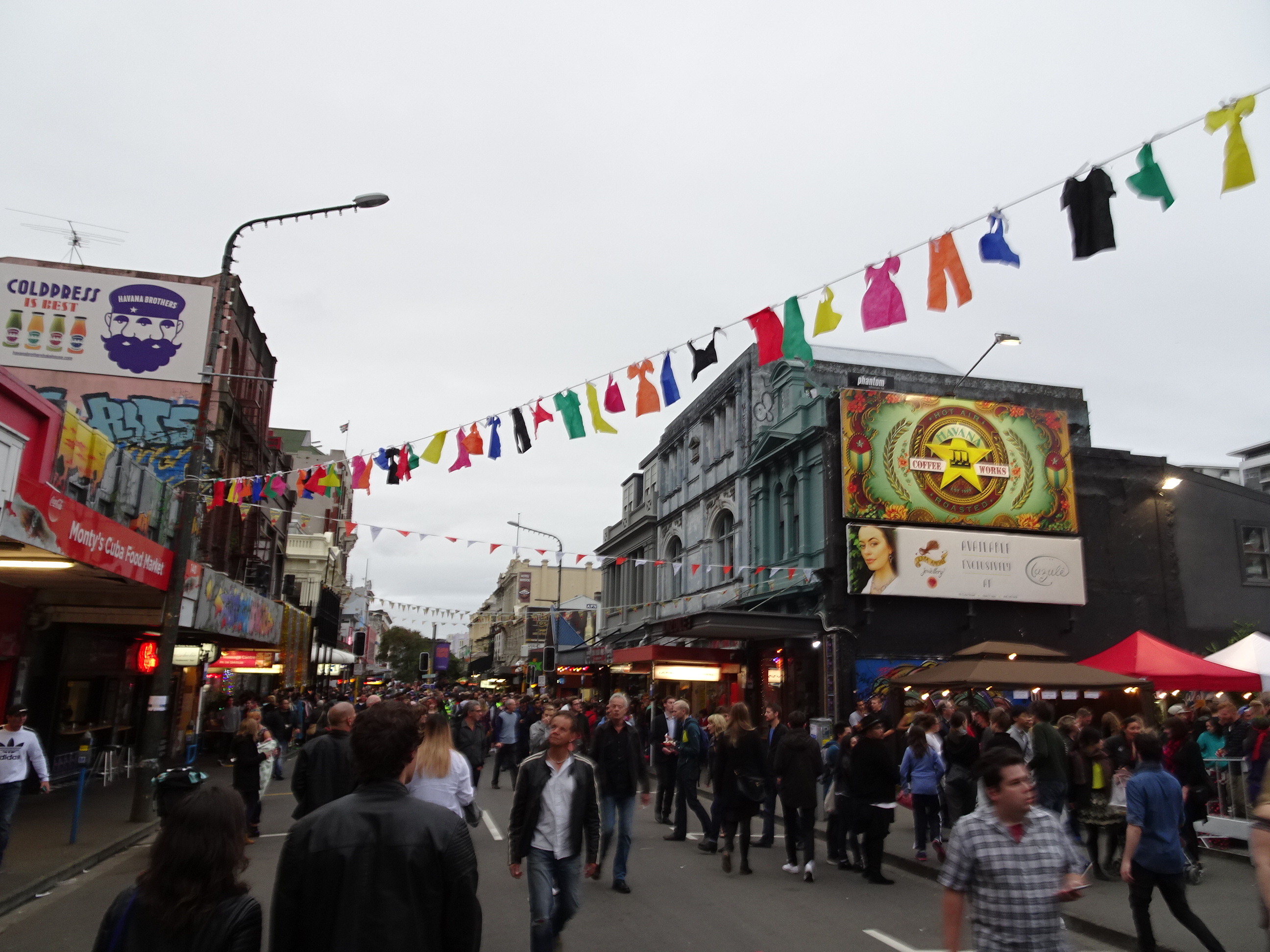 Am nimerit la Wellington în mijlocul unui festival important, Cuba Dupa – cu petreceri pe stradă și zeci de concerte care aveau loc pe mai multe scene amenajate în oraș. Numele vine de la Cuba Street, principala arteră pietonală din Wellington. De la aeroport am luat autobuzul până în centru și după o scurtă odihnă la hotel am ieșit seara la petrecerea din oraș. Atmosfera a fost foarte bună iar spectacolele excelente, singurul lucru care mi s-a părut ciudat a fost că alcoolul era interzis (se putea servi doar în pub-uri). Am stat la festival până noaptea târziu. Ziua următoare am vizitat ce e mai interesant prin Wellington.