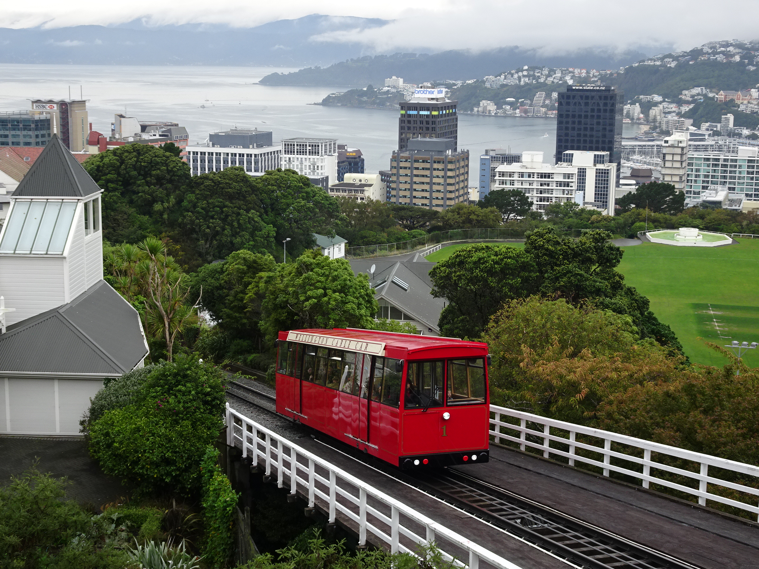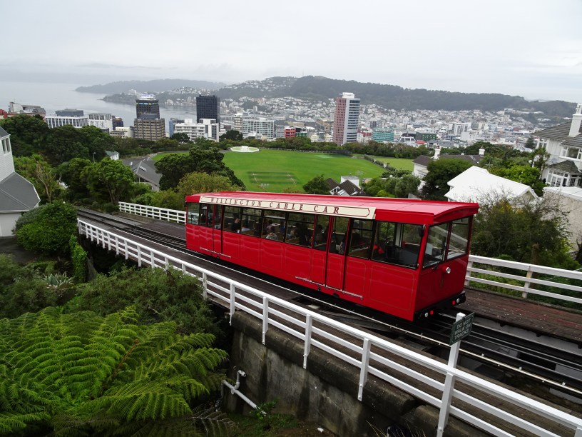Am mers mai întâi în downtown, unde am trecut pe la câteva magazine aflate la parterul zgârie-norilor. De pe bulevardul principal, Lambton Quay se poate urca cu funicularul (Cable Car) până pe dealul Kelburn de unde se văd unele din cele mai frumoase vederi ale orașului. De altfel imaginea Cable Car urcând pe panta abruptă este vederea cea mai comună a capitalei Noii Zeelande. La Kelburn am vizitat muzeul dedicat funicularului iar apoi am mers la plimbare prin uriașa grădină botanică. Un lucru interesant despre Wellington și funiculare – este orașul cu cele mai multe din lume, fiind construit într-un golf cu dealuri foarte abrupte. Multe reședințe cocoțate pe dealuri au funicular privat.