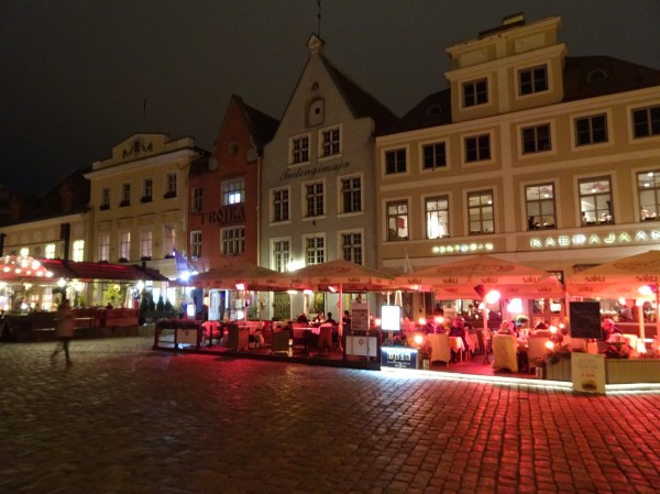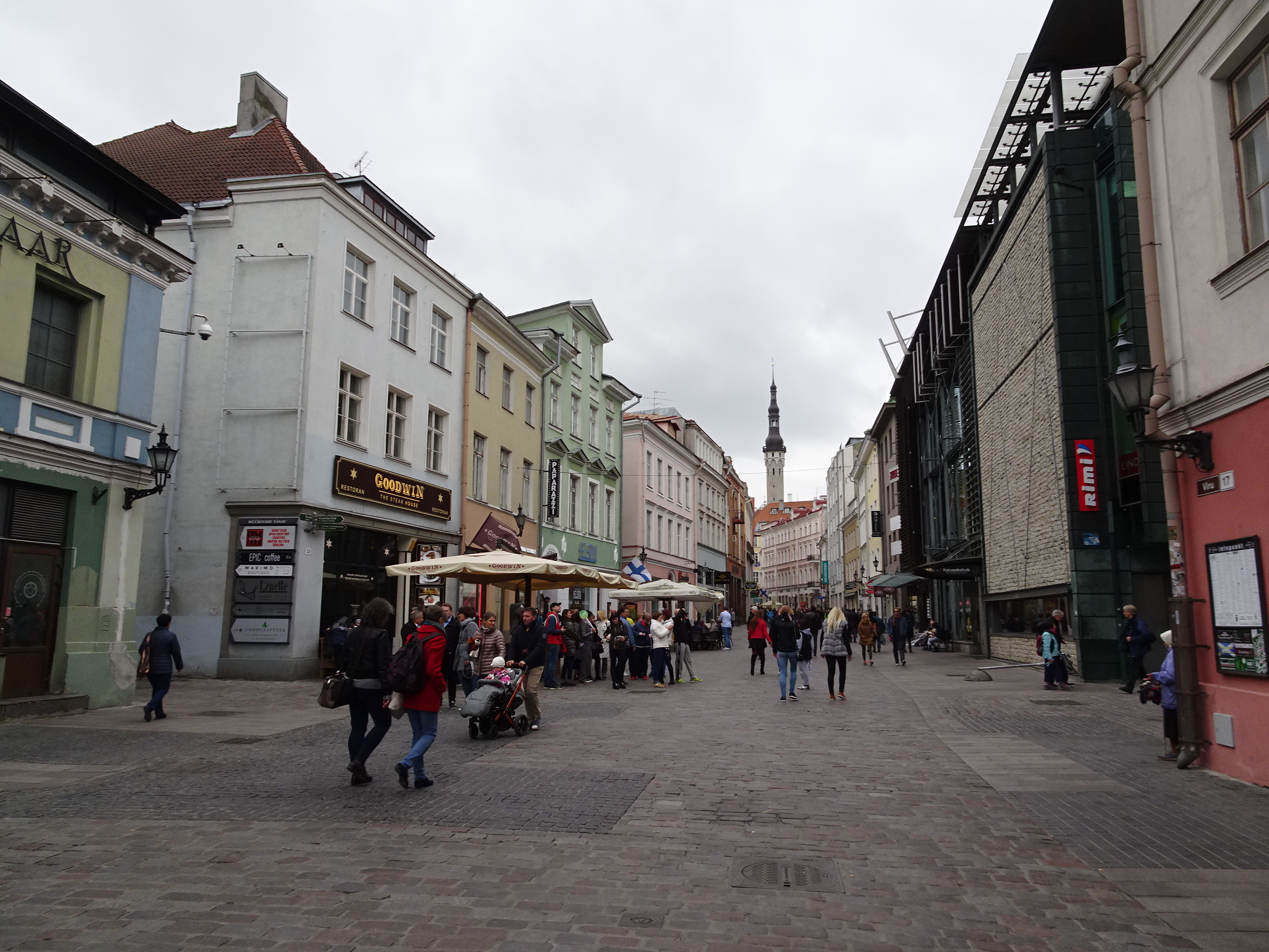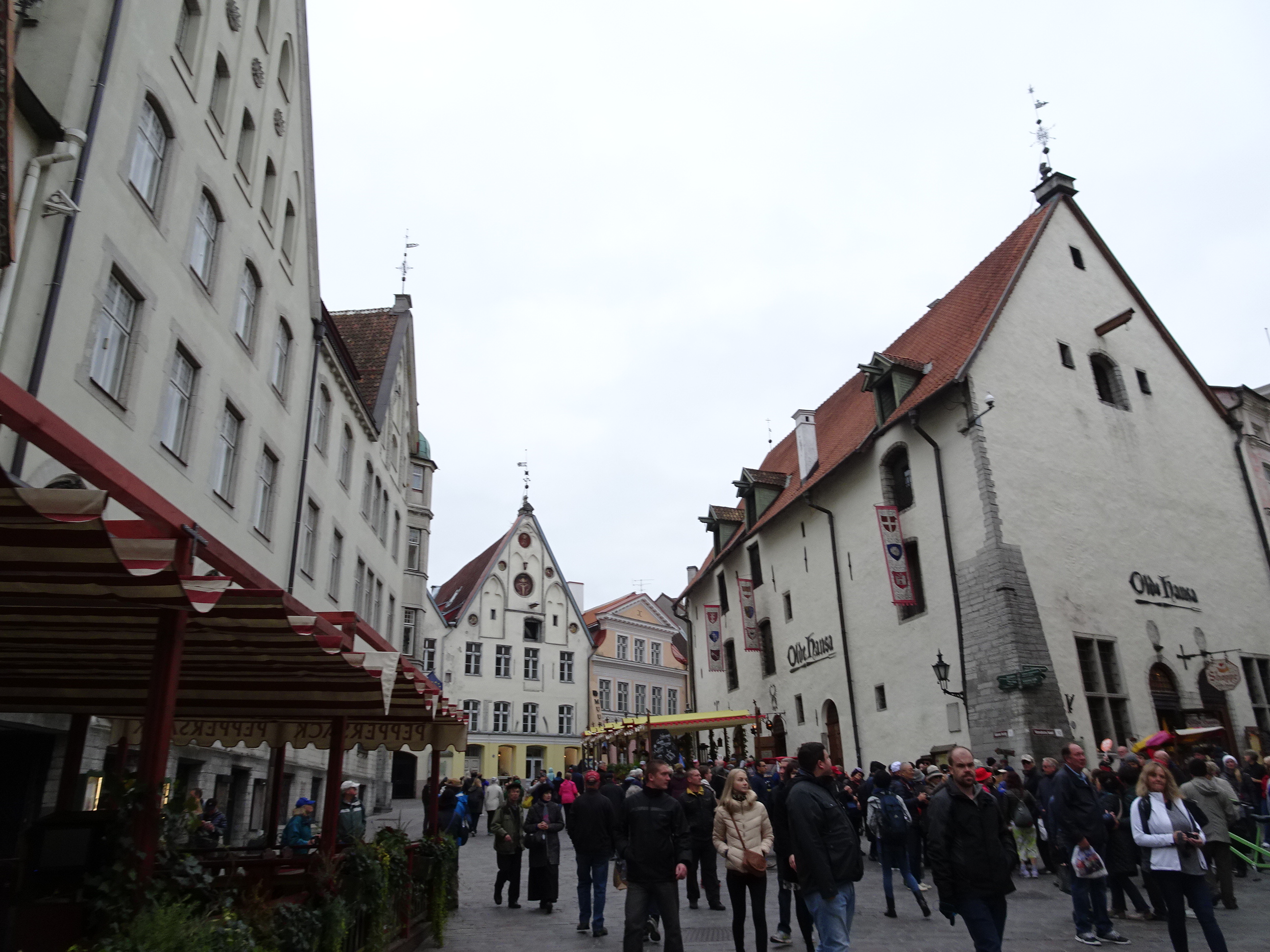 Am stat la un hotel în centrul orașului chiar pe principala arteră comercială, strada Viru. De acolo se ajungea în câteva minute la mai toate locurile turistice din cetate. Primul loc unde am mers este piața centrală Raekoja. Acolo se află clădirea veche a primăriei dar și multe alte construcții medievale în stil specific orașelor hanseatice. Raekoja este plină de localuri și terase. Era destul de frig în octombrie dar și așa mai toate terasele dotate cu încălzitoare și pături erau pline de oaspeți. Prin piață se pot întâlni mai multi vânzători de dulciuri și suveniruri, toți îmbrăcați în costume medievale.