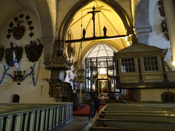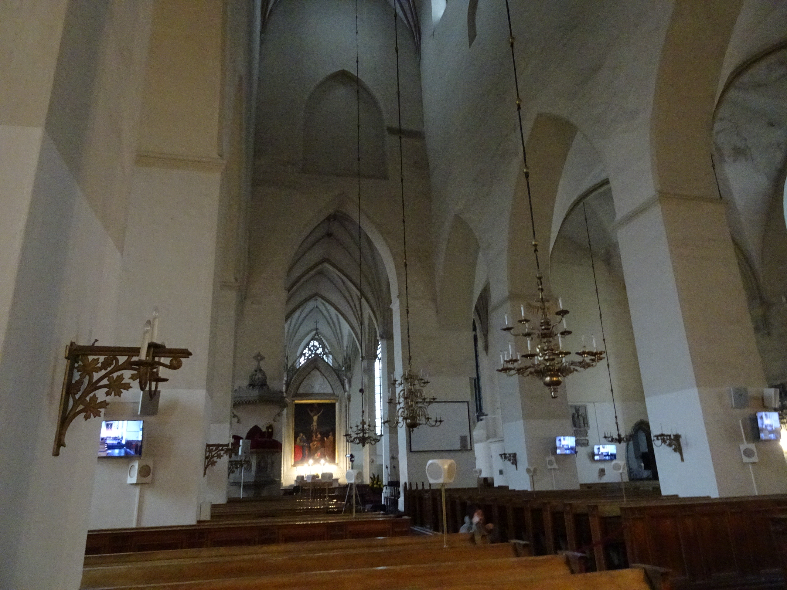 Am revenit apoi în orașul vechi unde am mai vizitat alte două biserici. Biserica Sf. Nicholas a fost transformată în muzeu și adăpostește tabloul Dansul Morții din Lubeck o operă artistică de mare valoare. Biserica Sf. Olaf este cea mai mare construcție din orașul vechi cu cel mai înalt turn. Am urcat și acolo în vârful turnului (se pare că nu mă săturasem de urcat pe scări) iar de pe acoperiș am văzut o nouă panoramă frumoasă peste Tallinn. Probabil că vederea de la Sf. Olaf este cea mai frumoasă pentru că de acolo se vede inclusiv dealul Toompea.