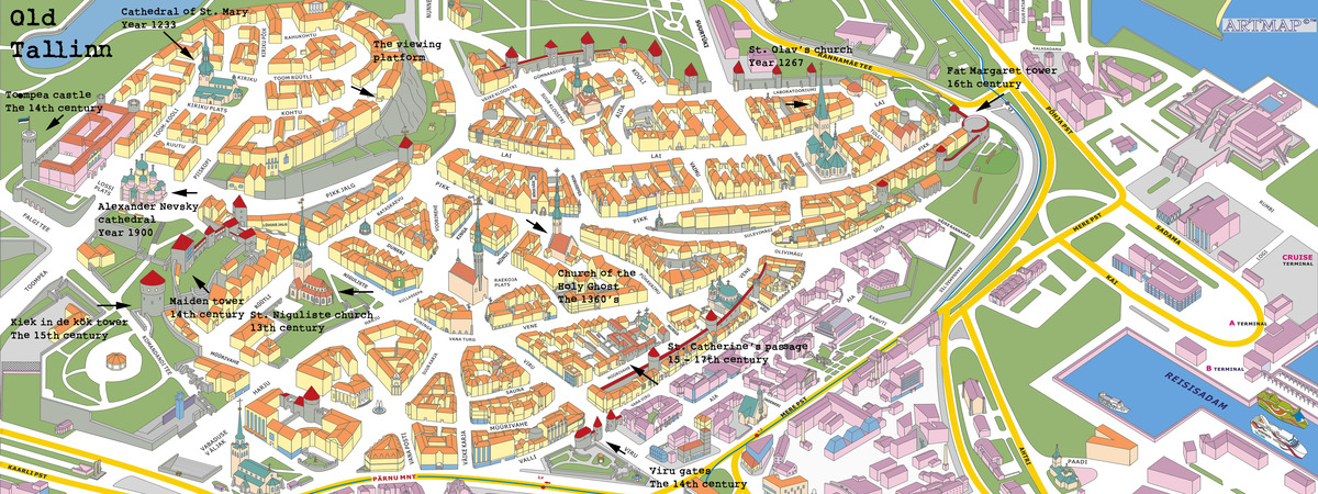 Am sosit la Tallinn pe un vapor mare de croazieră încărcat la refuz cu turiști, în marea lor majoritate finlandezi. Aceștia preferă deseori să petreacă un weekend la Tallinn pentru a face cumpărături, pentru a mânca bine sau pentru a petrece până noaptea târziu, la prețuri de 2-3 ori mai mici decât în Helsinki. Portul nu este foarte departe de orașul vechi, ceva mai mult de un kilometru. Se poate ajunge acolo cu autobuzul sau pe jos. Oricum centrul vechi este exclusiv pietonal, traficul în port se blochează la sosirea feriboturilor și autobuzele nu opresc decât la porțile cetății așa că am preferat mersul pe jos.