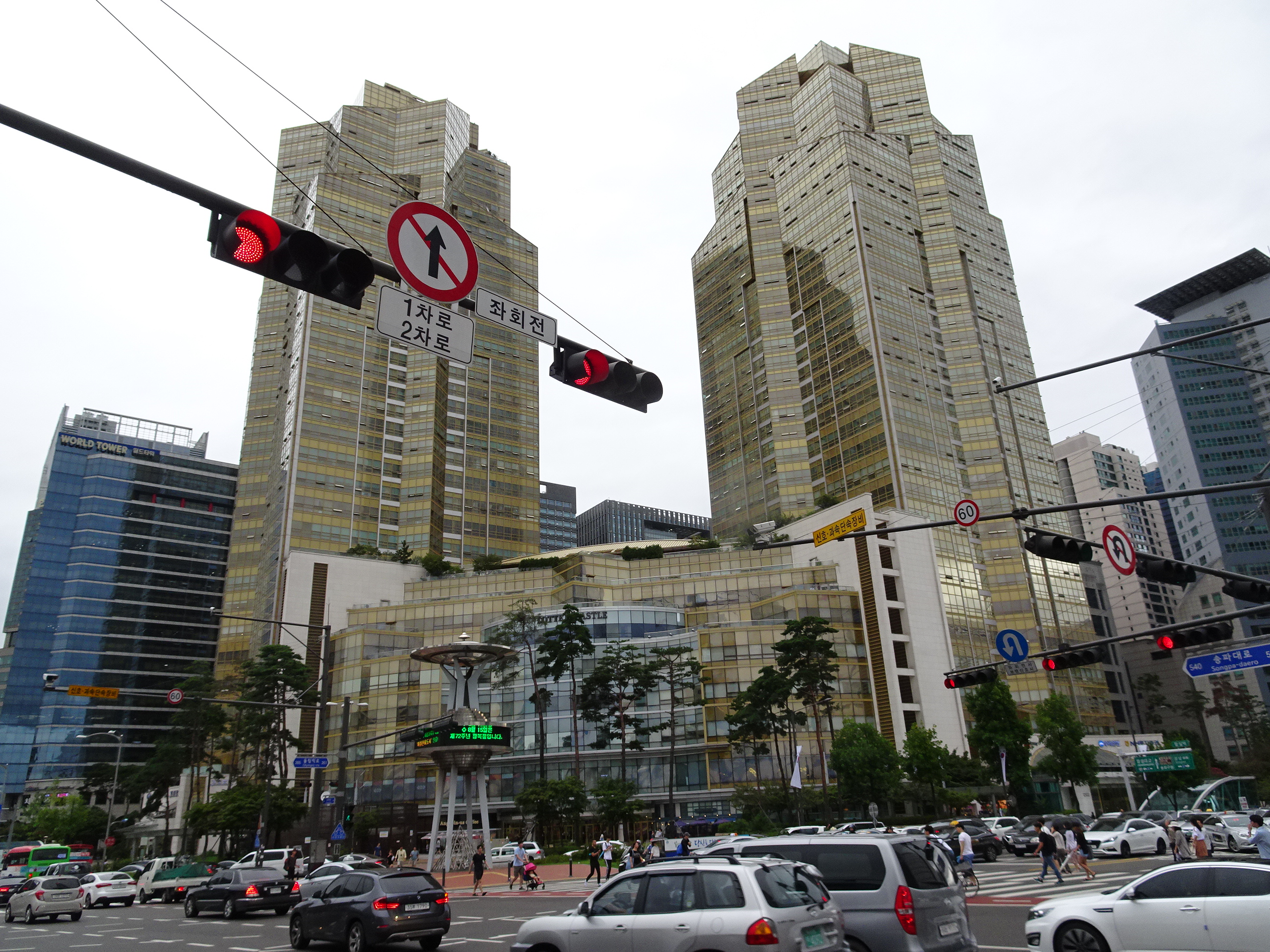 Tot prin zona Jamsil se află marele turn Lotte World Tower, cea mai înaltă clădire din Coreea și a cincea cea mai înaltă din lume. Turnul măsoară peste 500 de metri și 120 de etaje și adăpostește clădiri de birouri și un mall uriaș. Am trecut prin mall unde se află și mai multe magazine duty-free dar cu prețuri inaccesibile în cea mai mare lor parte. Lotte este una dintre cele mai mari companii din Coreea de Sud și deține o gamă vastă de proprietăți, hoteluri și afaceri de o natură foarte variată. Mai peste tot am întâlnit clădiri sau produse cu brandul Lotte.
