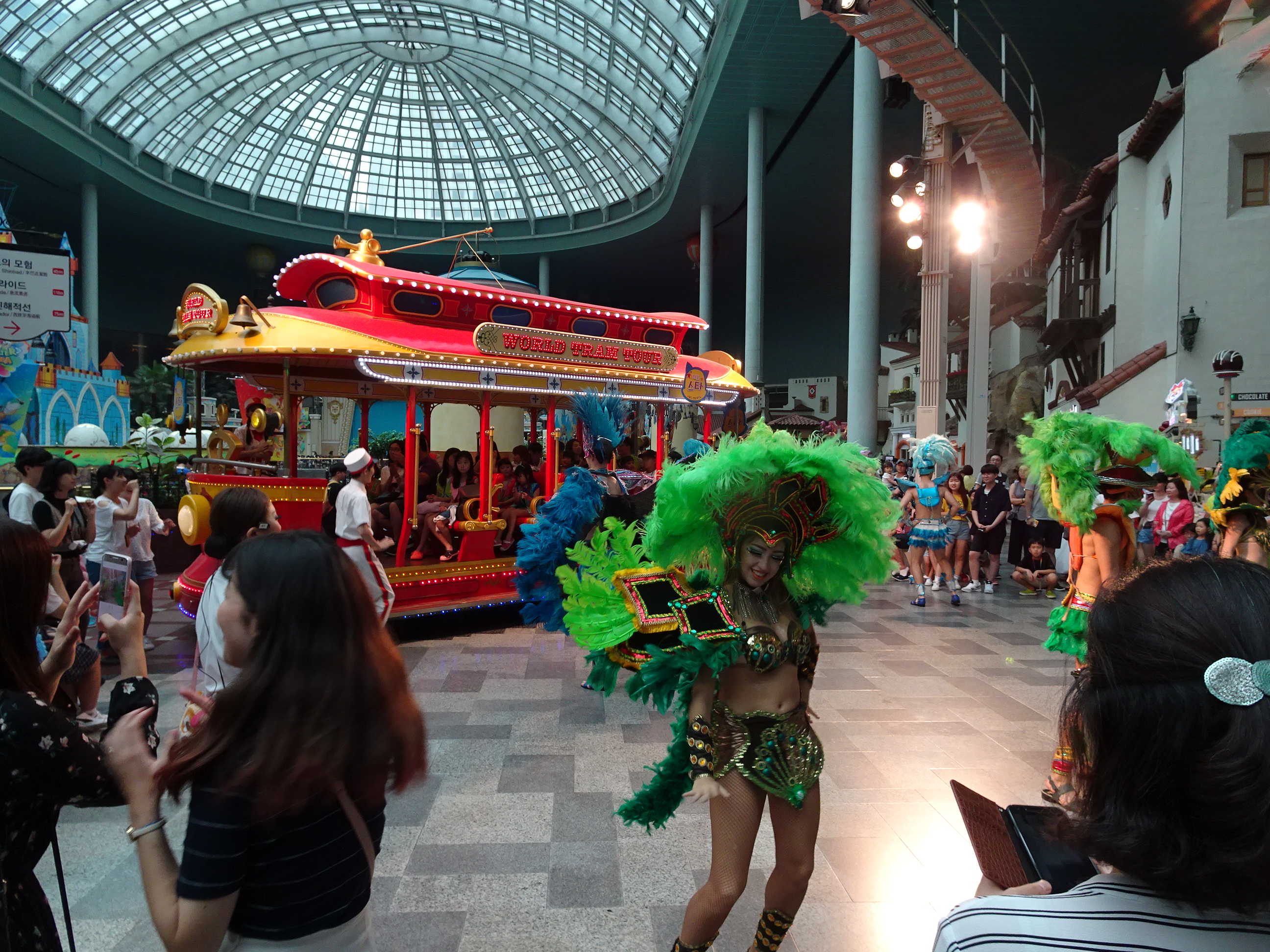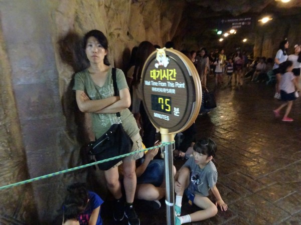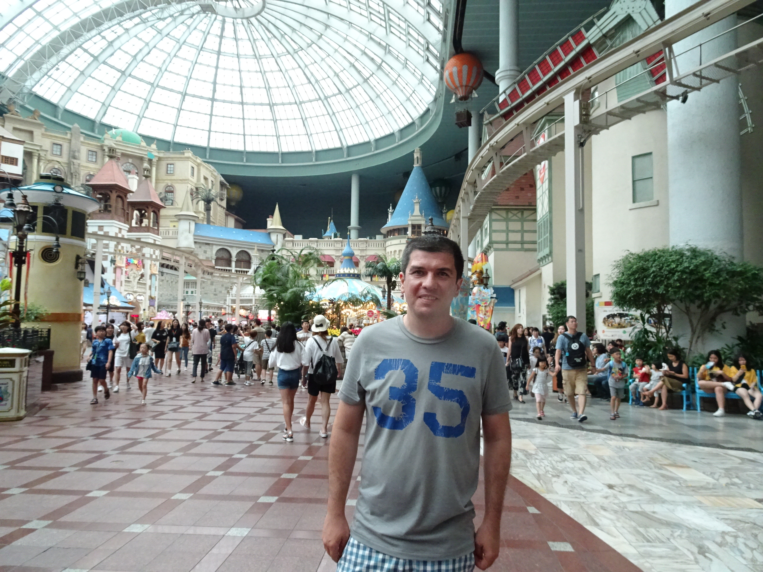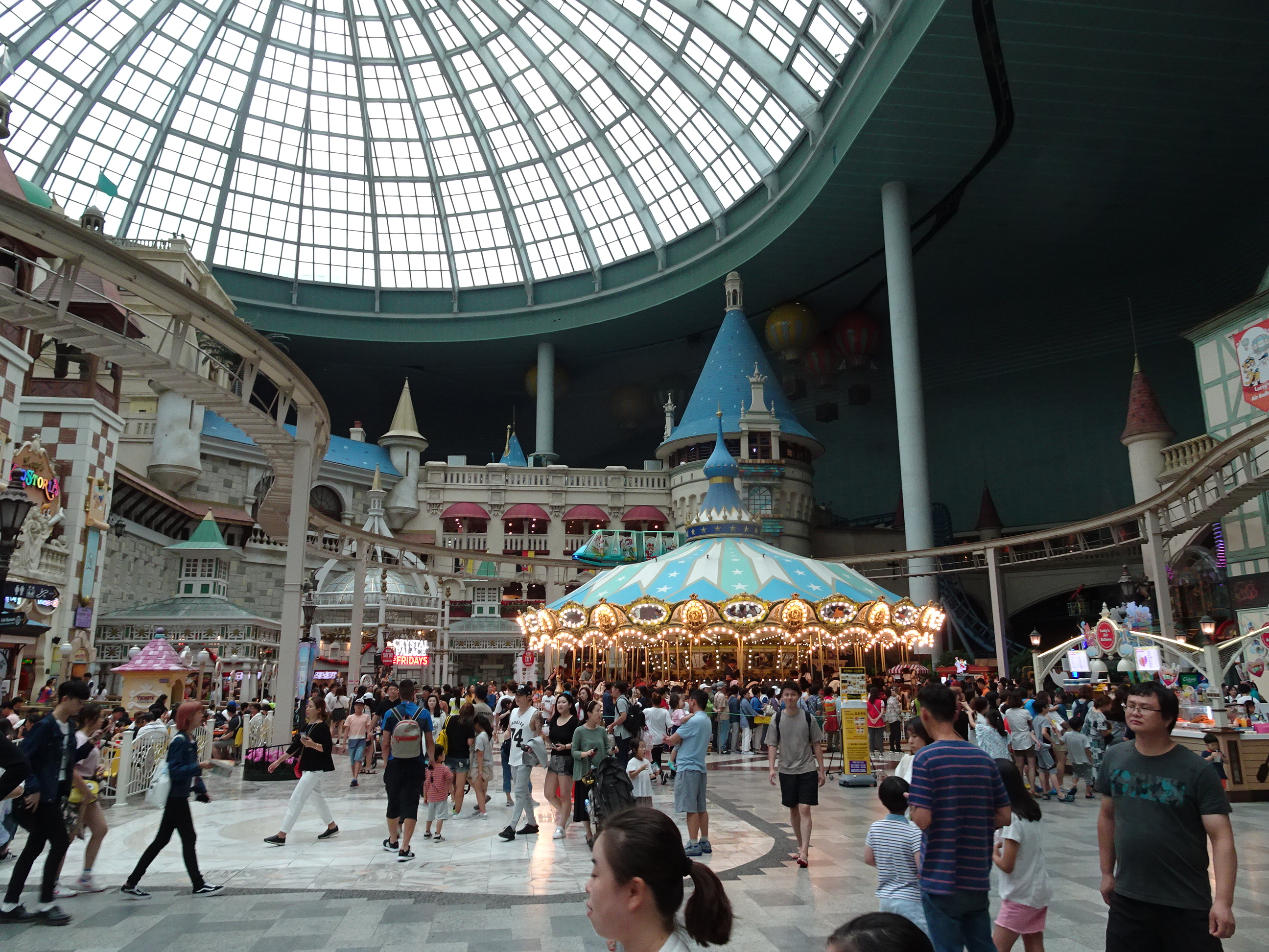 Ziua următoare nu a mai plouat dar nici n-a fost vremea foarte grozavă. Am decis să mergem la un parc de distracții, aflat mai departe, pe malul sudic al râului Han. Lotte Adventure World este cel mai important parc din Seul, dar și cel mai mare parc indoor din lume. Biletul de intrare (cu discount online) a fost 42.000 won (vreo 35 de euro). Ne-am gândit noi că marele parc indoor ar fi o variantă foarte bună de petrecut timpul pe o zi mohorâtă. Problema a fost că la fel s-au gândit și alte zeci de mii de Coreeni. Aglomerația pe care am găsit-o a fost inimaginabilă (mai era și zi liberă națională). Cozile la marile atracții (roller coastere, plimbări pe apă sau cu balonul) erau imposibile – între 90 și 120 de minute pentru fiecare din ele. După vreo oră de plimbat prin parc am realizat că nu are sens să mai încercăm. Ne-am limitat să asistăm la câteva spectacole, ne-am dat în câteva din atracțiile mai mici, am servit prânzul și apoi am plecat. Parcul arată foarte frumos, dar experiența nu a fost una deloc plăcută. Este un loc de evitat pe ploaie sau într-o zi liberă.