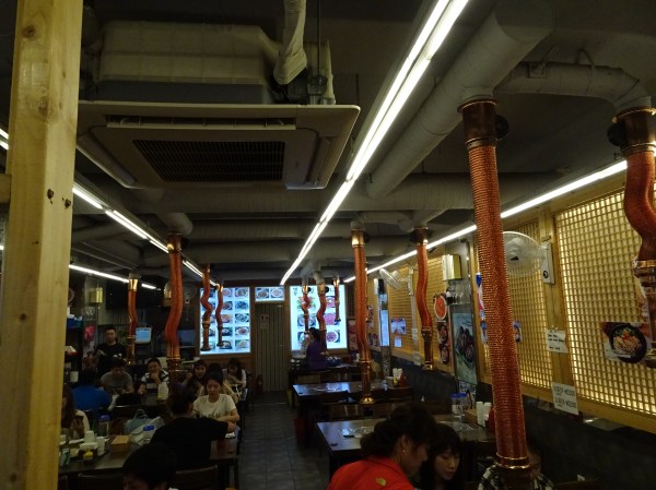 După amiaza am mers în zona Myeon-dong, districtul preferat de localnici pentru cumpărături și pentru restaurante. Nu lipsesc acolo de pe arterele pietonale toate marile branduri de retail ale lumii. De altfel, prețurile din Coreea mi s-au părut ceva mai mici ca pe la noi. Pe lângă magazine, prin Myeong-dong se găsesc zeci de tonete de street food, iar mâncarea e proaspătă și delicioasă. Am ales totuși să mergem la unul dintre restaurante pentru a gusta un Korean barbecue. Aceasta este o adevărată experiență în sine. Restaurantele cu acest specific sunt amenajate mai diferit. Fiecare masă are un grătar electric în mijloc și deasupra o hotă pentru evacuarea fumului. Clienții își aleg felul de carne dorit iar apoi și-l prepară singuri pe grătar în timp ce masa se umple de tot felul de gustări și garnituri. Alături de friptura de vită am gustat și kimchi, un fel de mâncare preferat în Coreea care e un fel de omletă cu legume fermentate. Coreeni preferă să servească legumele așa. Practic ele sunt lăsate în caserole „la stricat” timp de câteva ore sau o zi iar apoi sunt servite la masă. Legumele nu au fost tocmai pe gustul meu, dar sunt interesante de gustat.