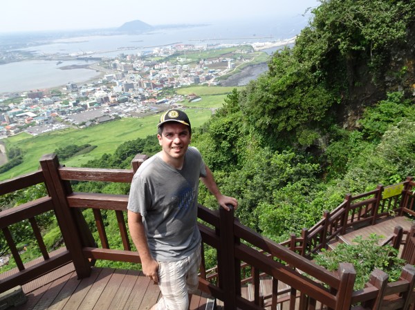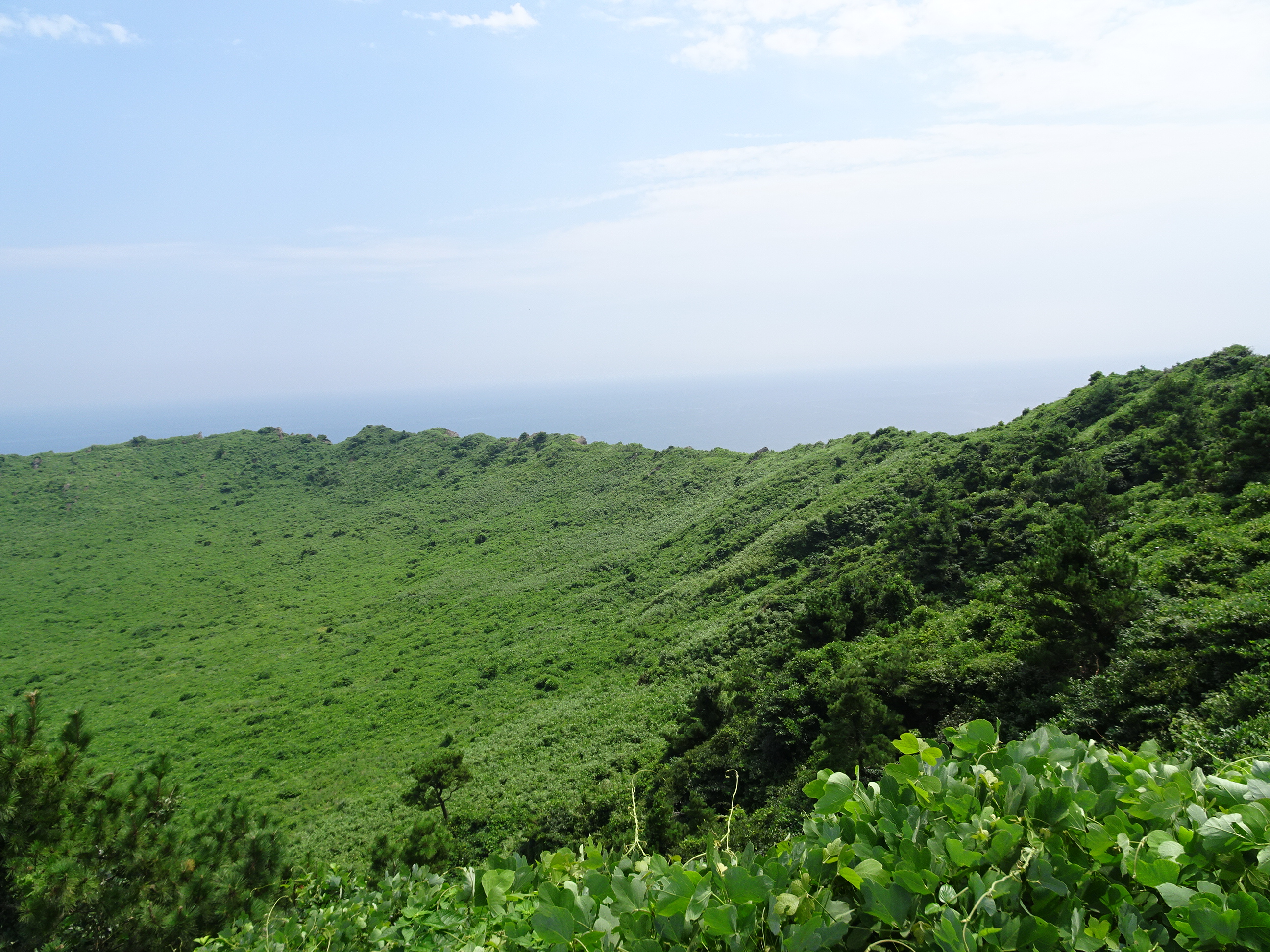 După jumătate de oră am ajuns în vârf. A fost foarte obositor nu neapărat din pricina urcării ci a căldurii care la ora prânzului era destul de greu de suportat. Vederea de sus a meritat însă tot efortul, craterul verde fiind o priveliște unică. Am avut și un mic incident la Jeju. Am văzut pe drum mai multe insecte care mai de care mai colorate și mai ciudate, dar și foarte mari. La un moment dat, când ne odihneam pe o bancă, soția a fost înțepată de una dintre ele -un miriapod galben-verde. Înțepătura s-a umflat și am avut un moment de panică mai ales că insecta nu semăna cu nimic din ce mai văzusem.