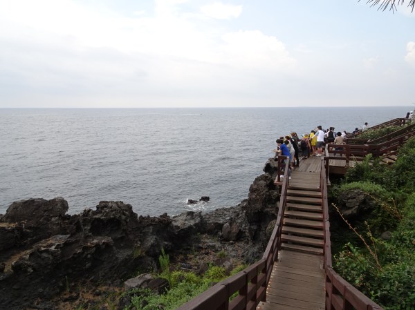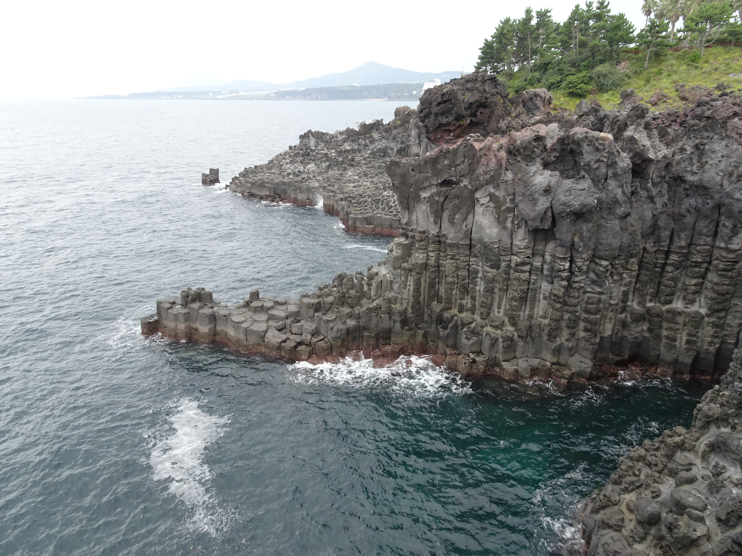Ultima zi la Seogwipo mai aveam încă destul de mult timp. Zborul spre Seul era pe la 5 după amiaza. Am lenevit mai mult pe terasa hotelului de la etajul 10 iar apoi am luat un taxi și am plecat la plimbare. Am vizitat mai întâi stâncile de la Daepo, o zonă mai neobișnuită la malul mării cu formațiuni din bazalt create de erupții vulcanice acum multe secole. Stâncile din bazalt seamănă doar cu ce am mai văzut prin Irlanda la Giant’s Causeway sau prin Islanda la plaja din Vik.