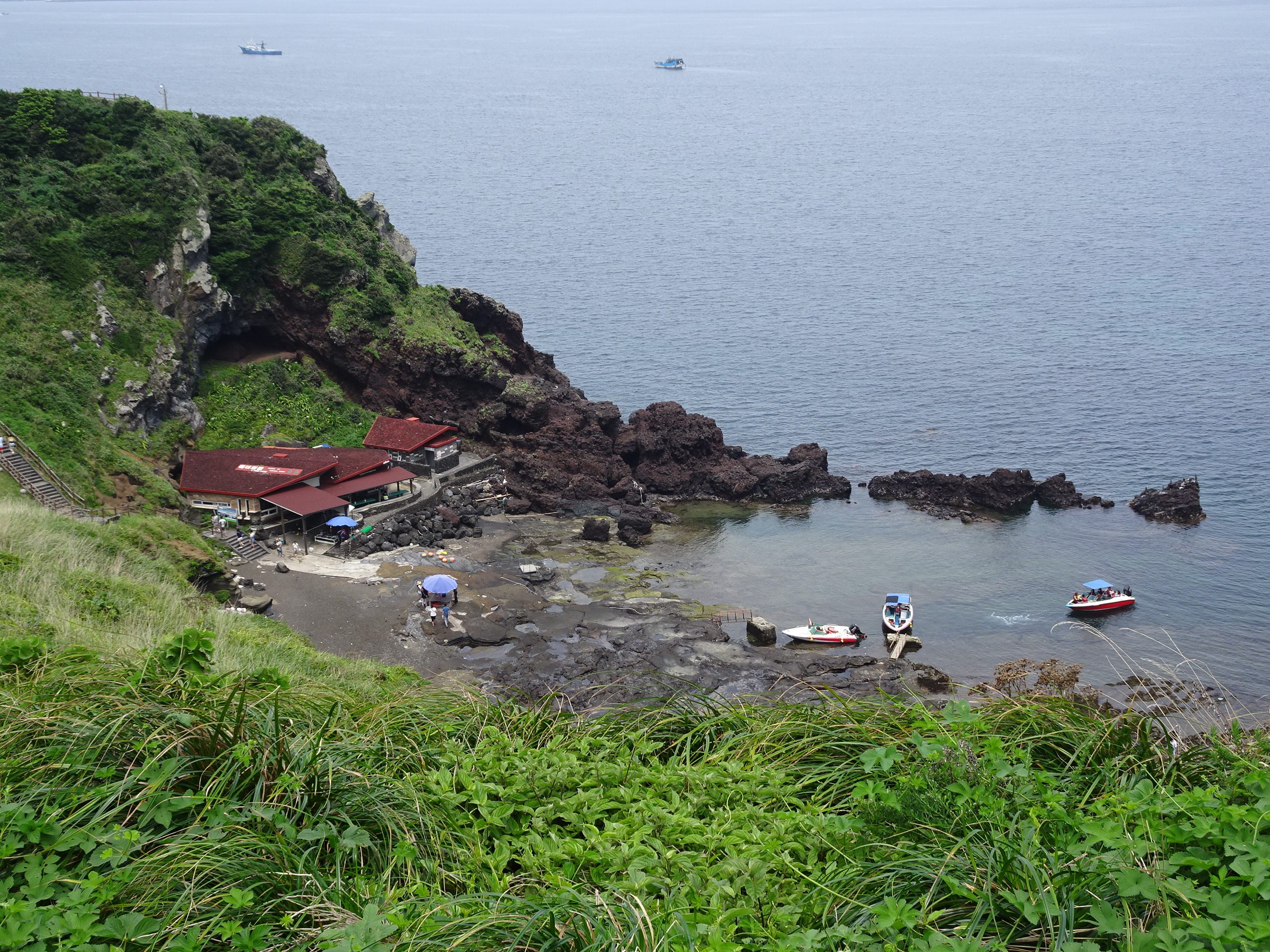 Înainte de a urca se poate face o oprire într-un mic golf pentru o demonstrație de scufundări. Este o tradiție pentru femeile din Jeju să se scufunde după scoici și alte fructe de mare, bogăția marină fiind vastă. Este foarte interesant de observat cum se aruncă în mare iar secunde mai târziu revin la suprafață cu o captură impresionantă.
