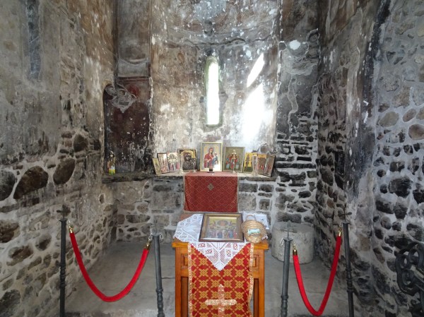 Am așteptat să mai treacă canicula și după amiază am urcat spre cetatea Kalaja. La prânz la 40 de grade ar fi fost imposibil. Se merge cam 30 de minute din centru la urcare. Drumul trece prin fostul cartier sârbesc unde priveliștile sunt foarte triste. Se pot vedea case arse, cu geamuri sparte sau cu graffiti pe garduri. Sunt și multe biserici în zonă cu porțile ferecate. Dintre acestea merită menționată Biserica Salvatorului care a făcut parte din patrimoniul mondial UNESCO, dar a fost distrusă în mare parte în timpul războiului. Am văzut câțiva turiști albanezi care au bătut la poarta bisericii și li s-a spus că este închis. Am încercat și eu să intru. Omul de la poartă s-a uitat la mine și m-a întrebat de unde sunt. Auzind că sunt din România, mi-a făcut un semn să intru repede. Mi-a spus că este preot ortodox și că acum se ocupă doar de paza bisericii. M-a invitat înăuntru, în ce a mai rămas din capelă iar acolo a ținut o slujbă special ținând în mană o biblie parțial arsă. Am simțit că era foarte emoționat. Înainte de plecare, am făcut o mică donație bisericii și când a văzut a început să plângă. M-a luat în brate și a spus ceva de genul „frate rumânu”…
