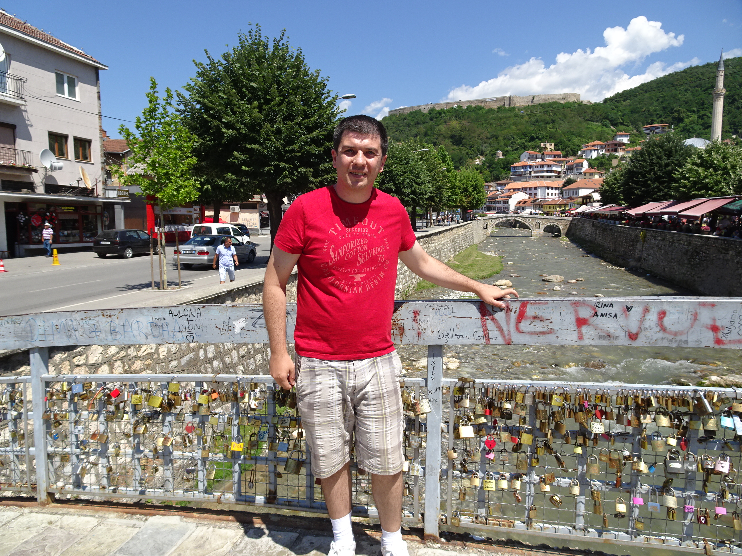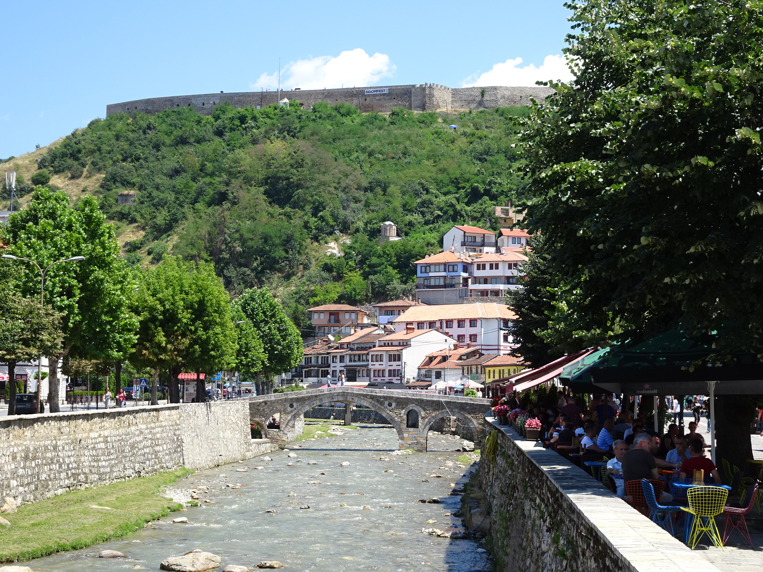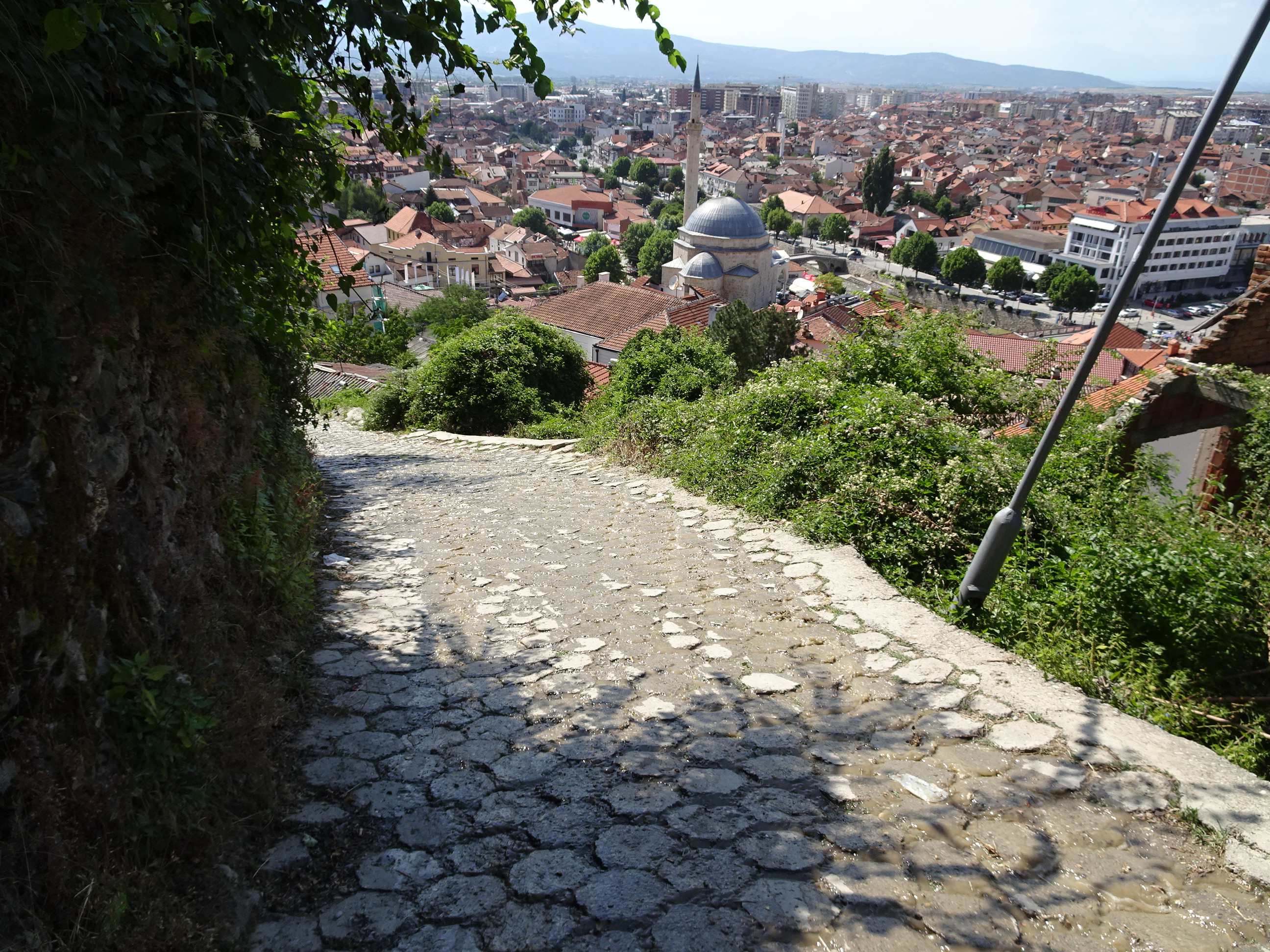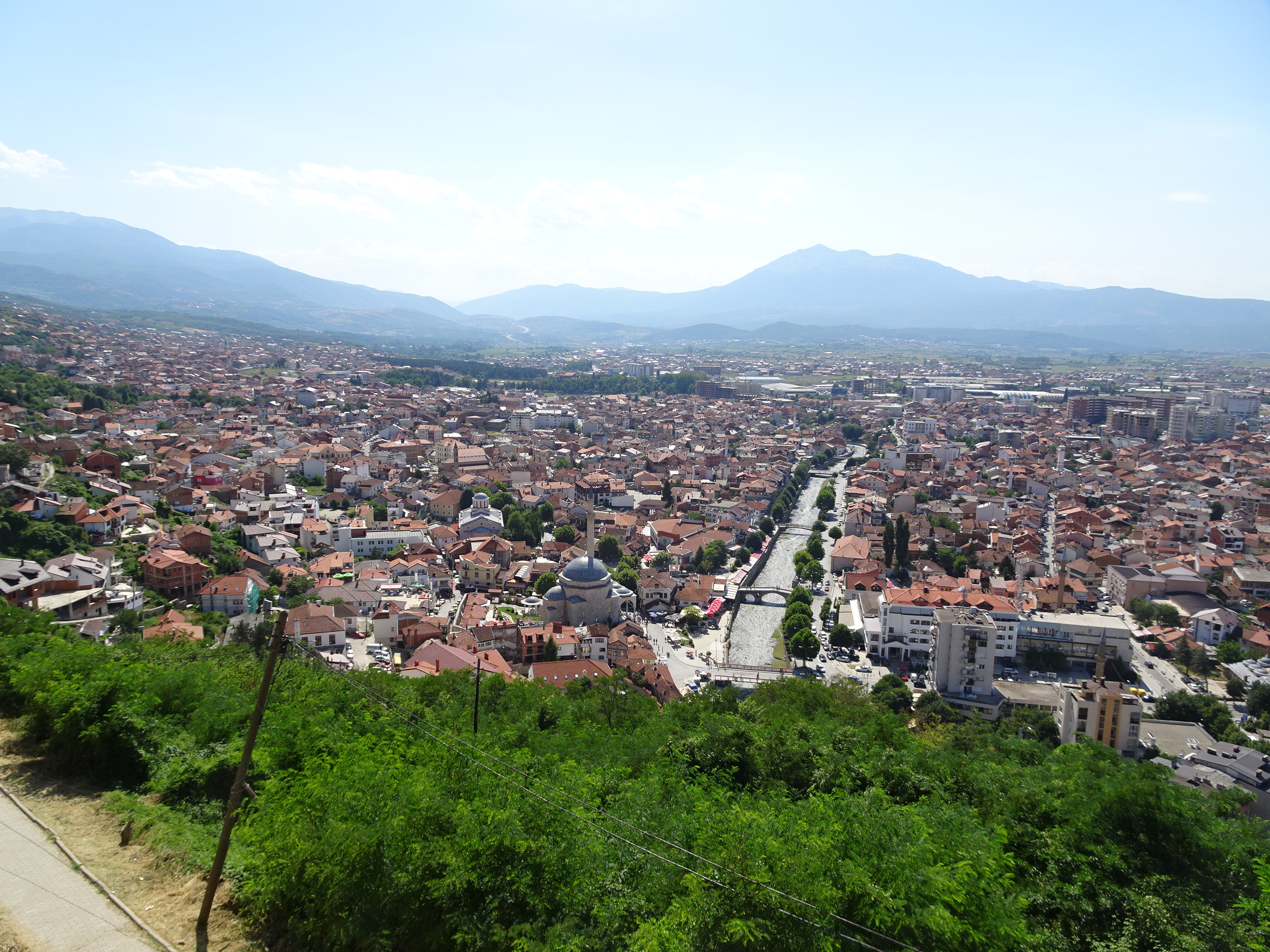 Mi-a luat ceva să îmi revin după momentul ăsta… Am continuat apoi urcarea spre cetate prin căldură iar când am ajuns sus am intrat cu totul într-un izvor pentru a mă răcori. Cetatea din vârf de munte este foarte mare iar de pe zidurile abrupte se pot vedea priveliști splendide peste văi și peste Prizren. De sus se vede cel mai bine ce oraș frumos este. Tot de acolo se văd bine munții din jur, inclusiv vârfurile de peste 2000 de metri din Sar Planina. Seara am revenit în oraș. Era sâmbăta iar orașul era zguduit de basul difuzoarelor din cluburi și de la terase. Spre deosebire de alte locuri din zonă, Prizren e un oraș plin de viață. N-am stat totuși prea mult prin oraș pentru că plecam dimineața la prima oră.